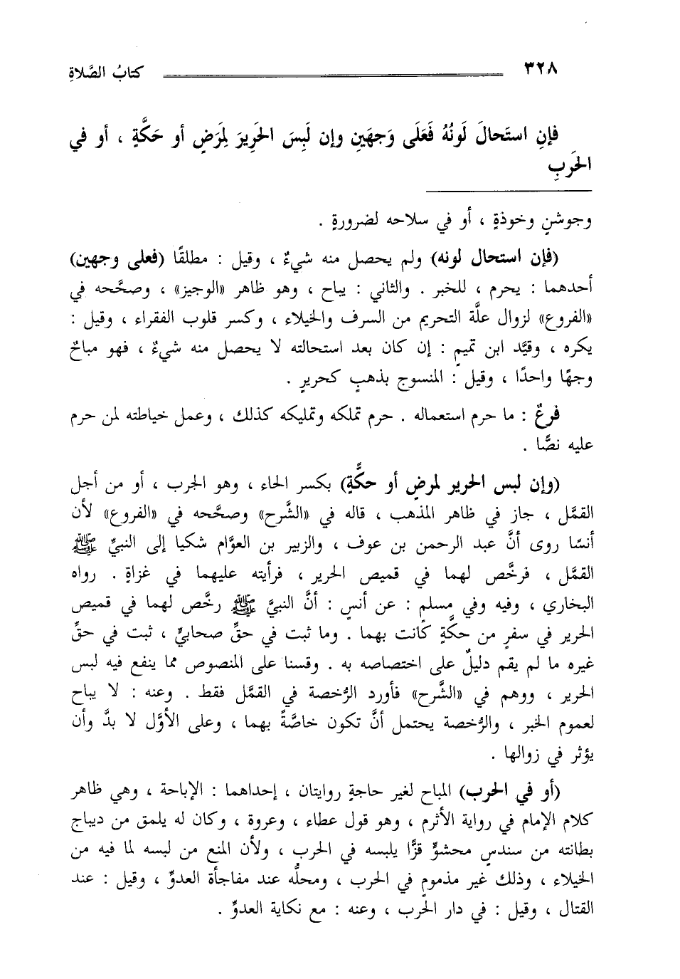 فإن استحال لونه فعلى وجهين وإن لبس الحرير لمرض أو حكة أو في الحرب