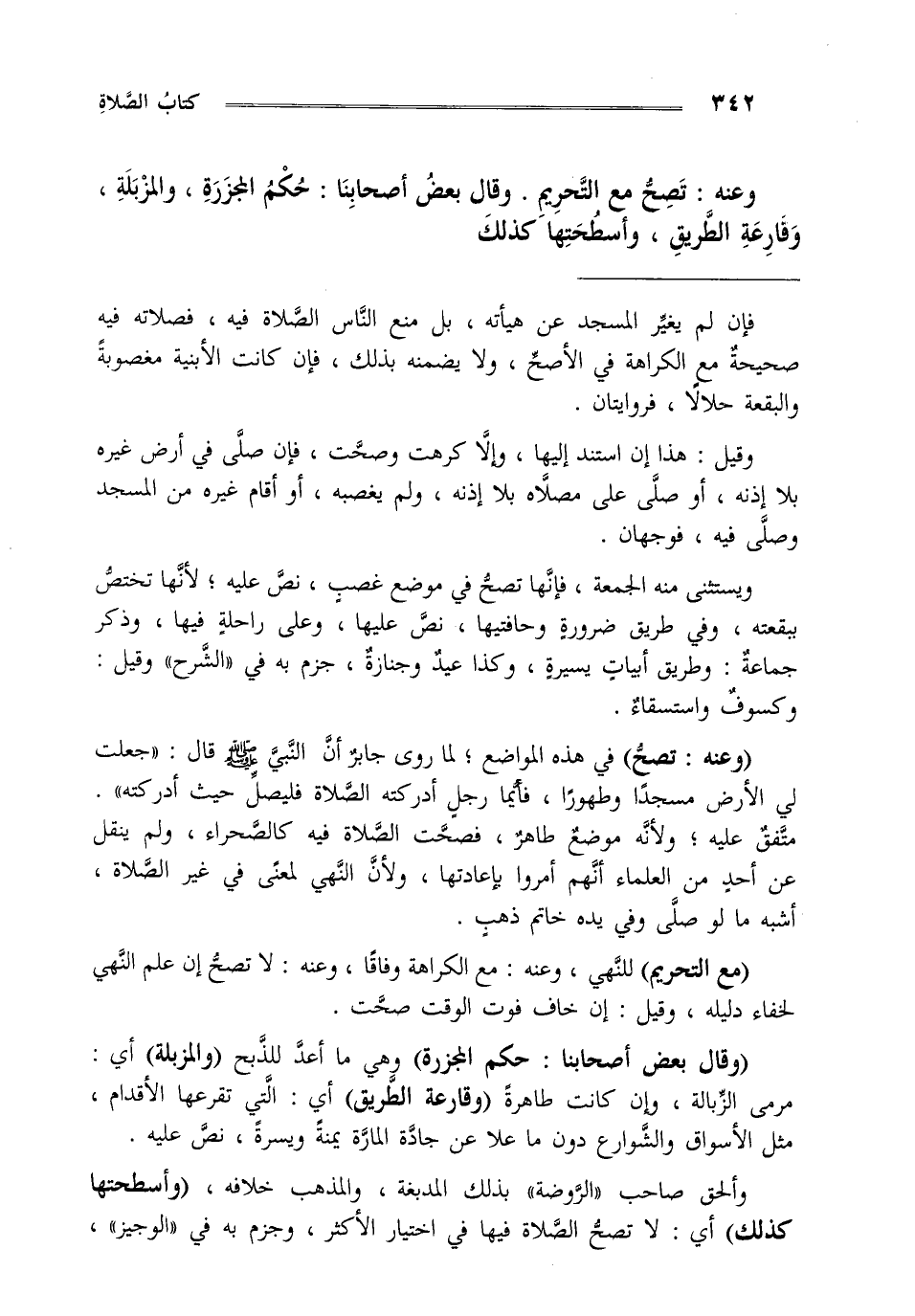 وعنه تصح مع التحريم وقال بعض أصحابنا حكم المجزرة والمزبلة وقارعة الطريق وأسطحتها كذلك