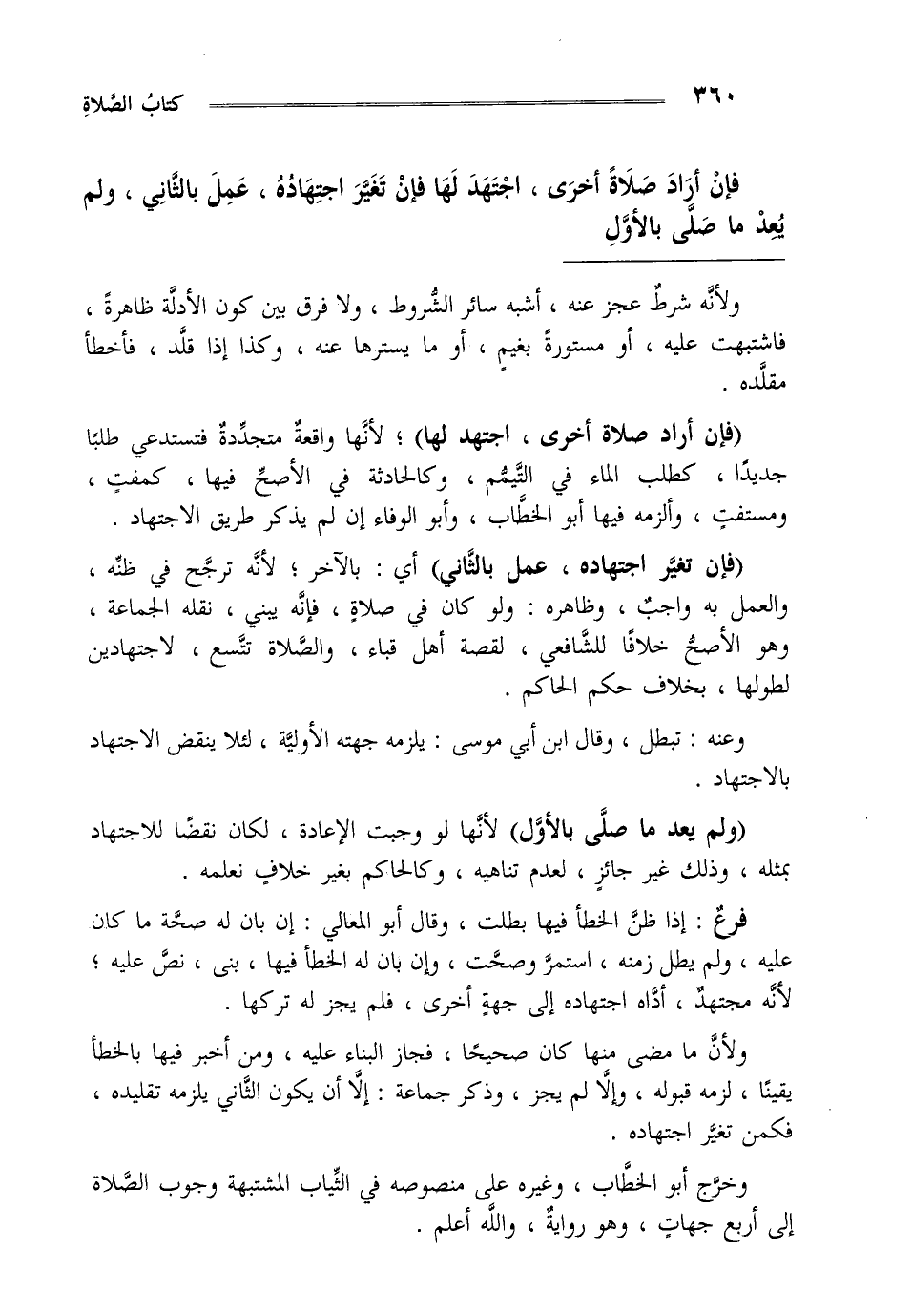 "فإن أراد صلاة أخرى اجتهد لها" لأنها واقعة متجددة فتستدعي طلبا جديدا كطلب الماء في التيمم وكالحادثة في الأصح فيها كمفت ومستفت وألزمه فيها أبو الخطاب وأبو الوفاء إن لم يذكر طريق الاجتهاد.