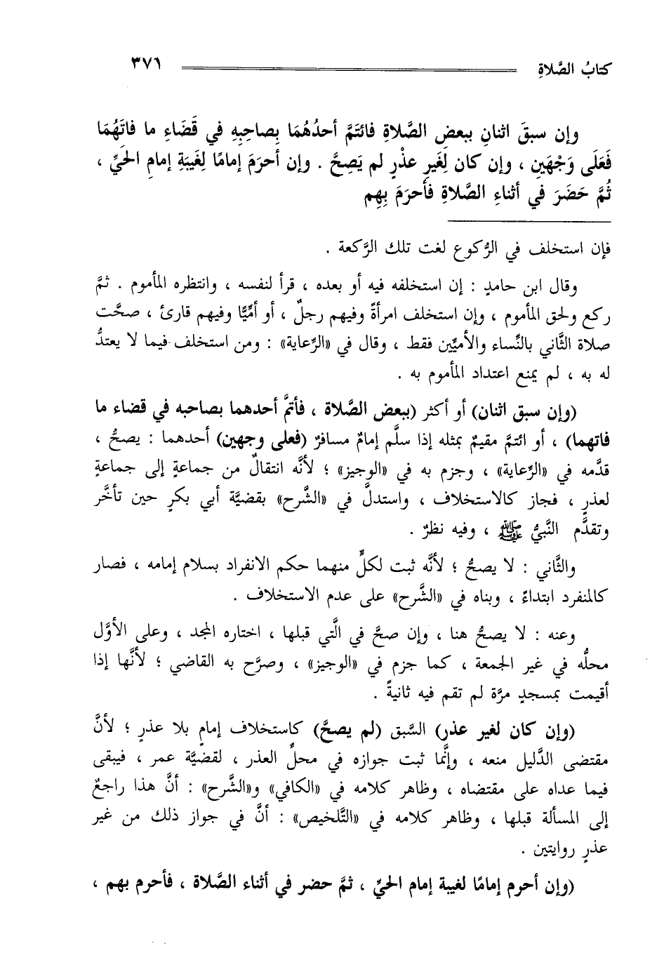 وقال ابن حامد إن استخلفه فيه أو بعده قرأ لنفسه وانتظره المأموم ثم ركع ولحق المأموم وإن استخلف امرأة وفيهم رجل أو أميا وفيهم قارئ صحت صلاة الثاني بالنساء والأميين فقط وقال في الرعاية ومن استخلف فيما لا يعتد له به لم يمنع اعتداد المأموم به.