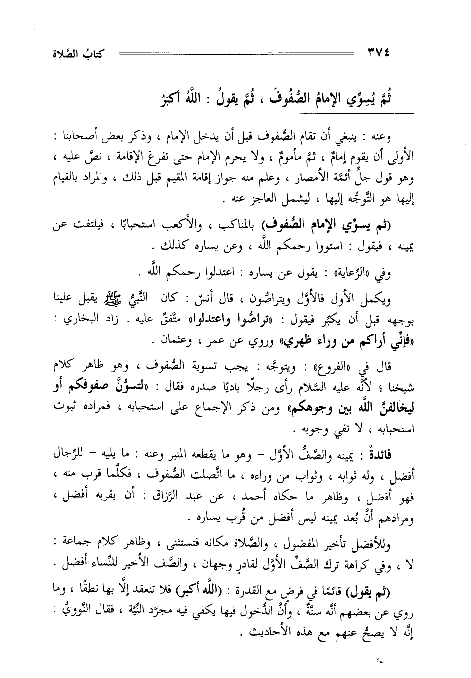 ثم يسوي الإمام الصفوف ثم يقول الله أكبر