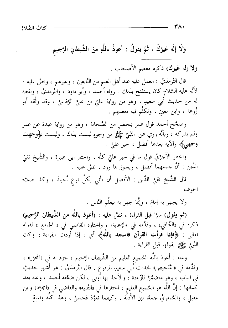 قال الترمذي العمل عليه عند أهل العلم من التابعين وغيرهم ونص عليه لأنه عليه السلام كان يستفتح بذلك رواه أحمد وأبو داود والترمذي ولفظه له من حديث أبي سعيد وهو من رواية علي بن علي الرفاعي وقد وثقه أبو زرعة وابن معين وتكلم فيه بعضهم.