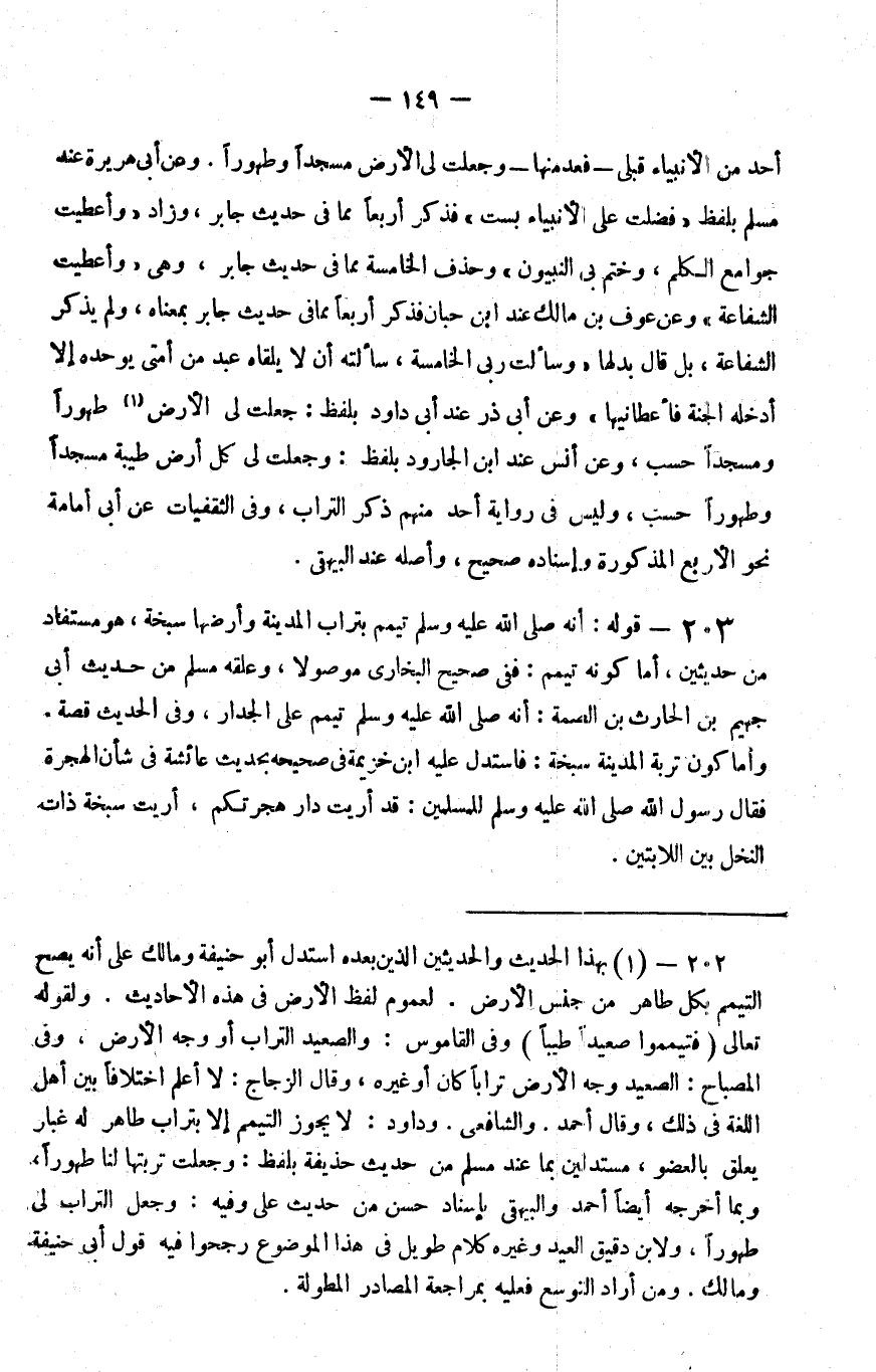 203 - قوله أنه صلى الله عليه و سلم تيمم بتراب المدينة وأرضها سبخة هو مستفاد من حديثين أما كونه تيمم ففي صحيح البخاري موصولا وعلقه مسلم من حديث أبي جهيم بن الحارث بن الصمة أنه صلى الله عليه و سلم تيمم على الجدار وفي الحديث قصة وأما كون تربة المدينة سبخة فاستدل عليه بن خزيمة في صحيحه بحديث عائشة في شأن الهجرة فقال رسول الله صلى الله عليه و سلم للمسلمين قد أريت دار هجرتكم أريت سبخة ذات النخل بين اللابتين