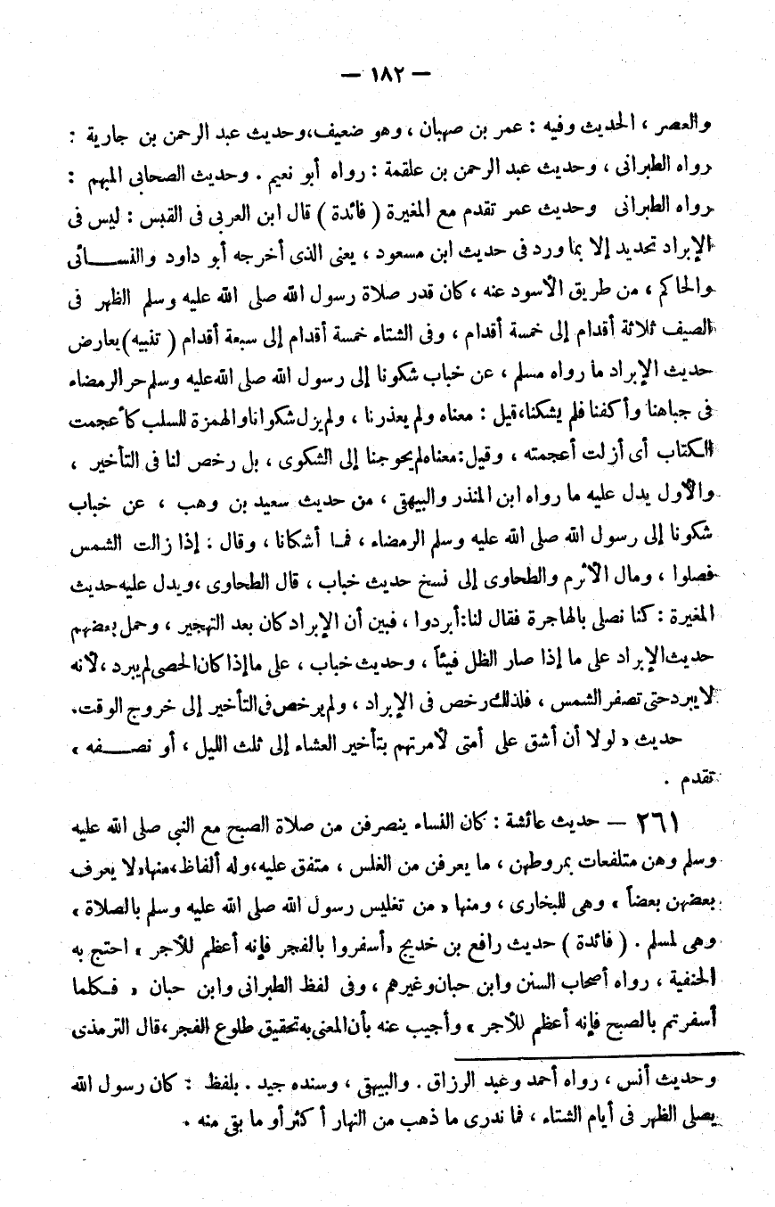 والعصر الحديث وفيه عمر بن صهبان وهو ضعيف وحديث عبد الرحمن بن جارية رواه الطبراني وحديث عبد الرحمن بن علقمة رواه أبو نعيم وحديث الصحابي المبهم رواه الطبراني وحديث عمر تقدم مع المغيرة