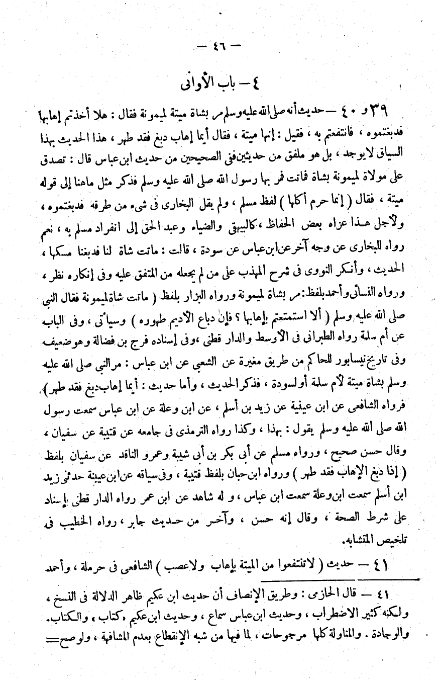 41 - حديث لا تنتفعوا من الميتة بإهاب ولا عصب الشافعي في حرملة وأحمد