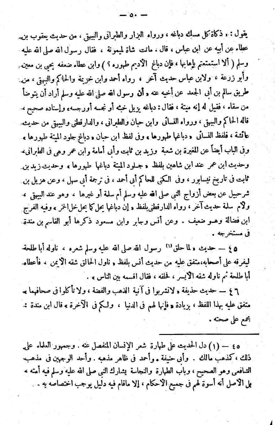 46 - حديث حذيفة لا تشربوا في آنية الذهب والفضة ولا تأكلوا في صحافهما متفق عليه بهذا اللفظ بزيادة فإنها لهم في الدنيا ولكم في الآخرة قال بن مندة مجمع على صحته