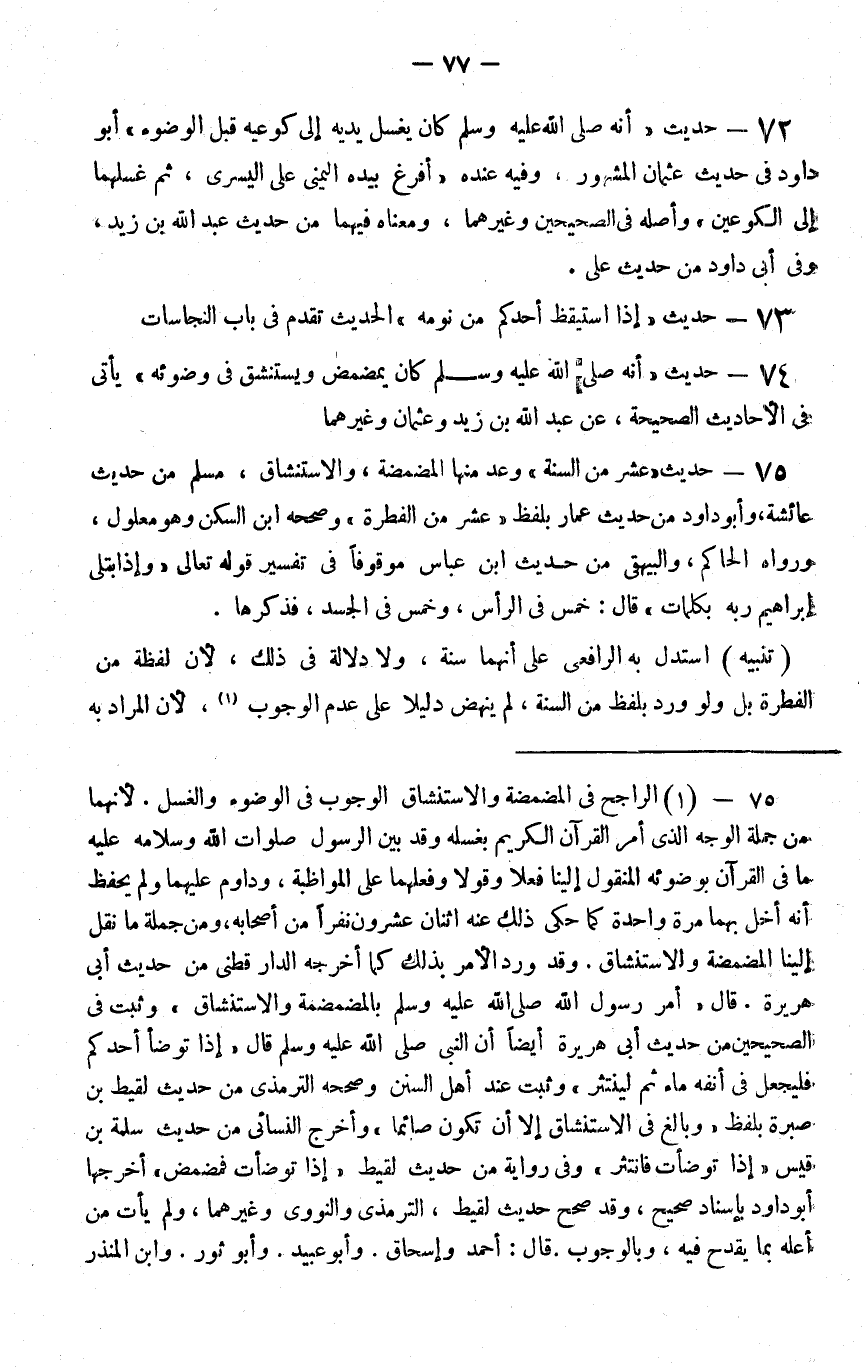 73 - حديث إذا استيقظ أحدكم من نومه الحديث تقدم في باب النجاسات
