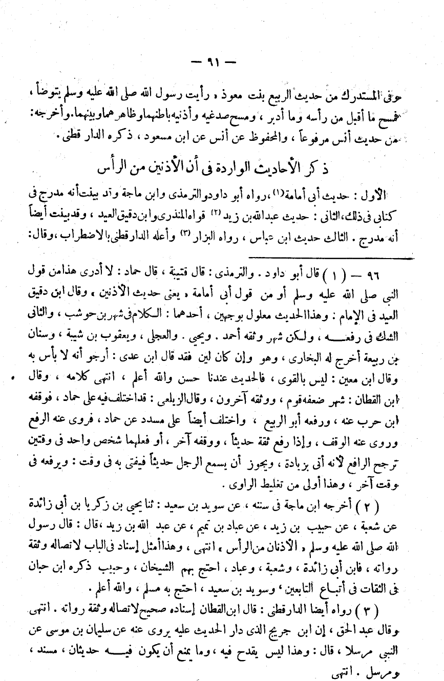 ( ذكر الأحاديث الواردة في أن الأذنين من الرأس الأول )