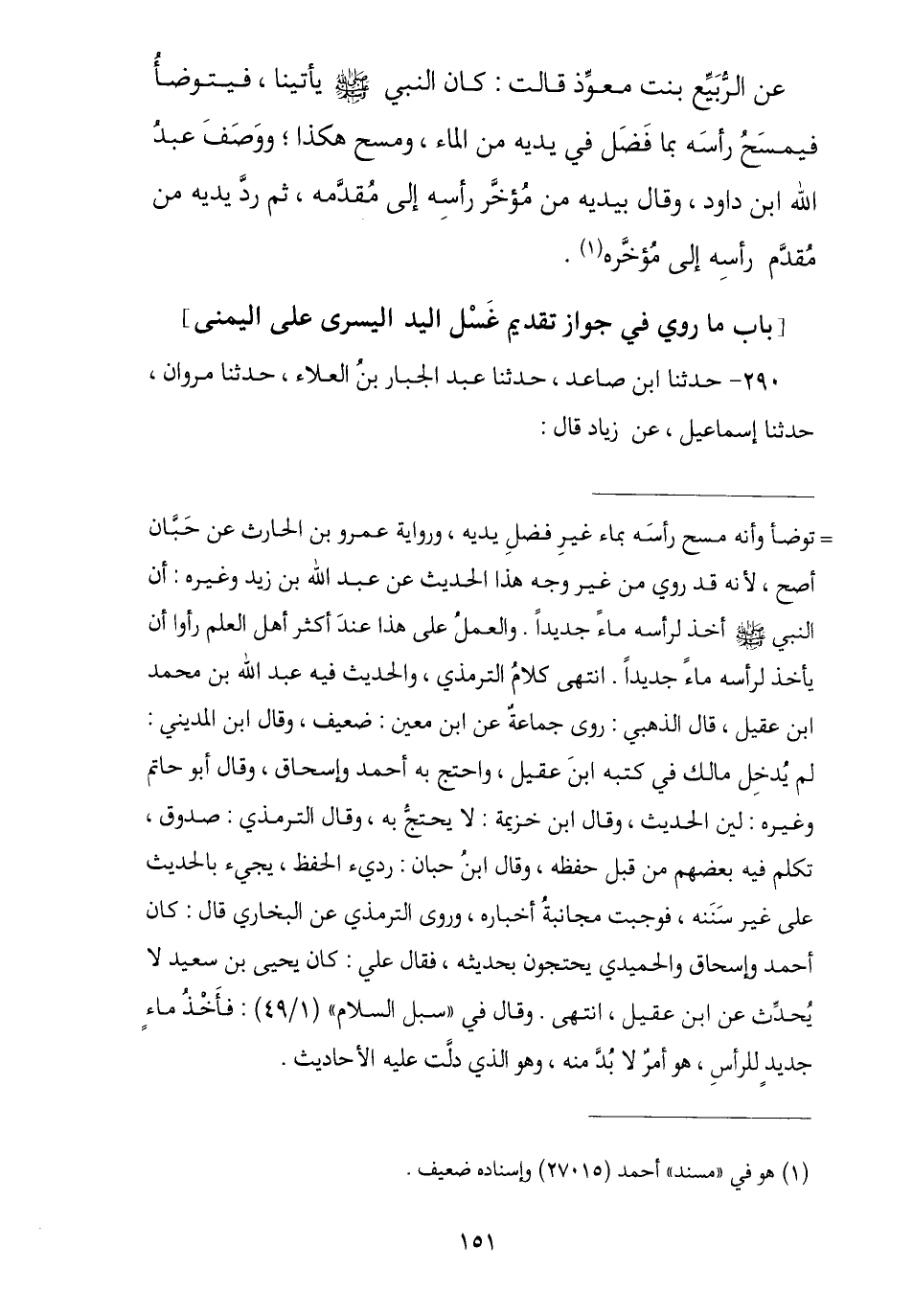 290 - نا ابْنُ صَاعِدٍ , نا عَبْدُ الْجَبَّارِ بْنُ الْعَلَاءِ , ثنا مَرْوَانُ , نا إِسْمَاعِيلُ , عَنْ زِيَادٍ , قَالَ: -[152]- جَاءَ رَجُلٌ إِلَى عَلِيِّ بْنِ أَبِي طَالِبٍ فَسَأَلَهُ عَنِ الْوُضُوءِ , فَقَالَ: أَبْدَأُ بِالْيَمِينِ أَوْ بِالشِّمَالِ؟ , «فَأَضْرَطَ عَلِيٌّ بِهِ ثُمَّ §دَعَا بِمَاءٍ فَبَدَأَ بِالشِّمَالِ قَبْلَ الْيَمِينِ»