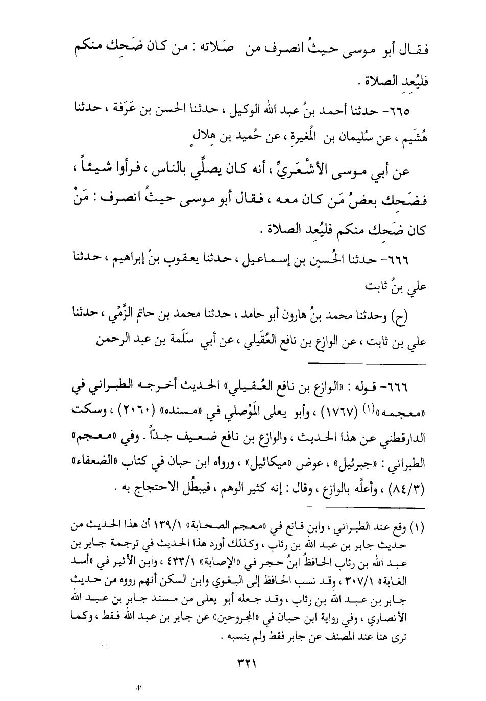 665 - نا أَحْمَدُ بْنُ عَبْدِ اللَّهِ الْوَكِيلُ , نا الْحَسَنُ بْنُ عَرَفَةَ , ثنا هُشَيْمٌ , عَنْ سُلَيْمَانَ بْنِ الْمُغِيرَةِ , عَنْ حُمَيْدِ بْنِ هِلَالٍ , عَنْ أَبِي مُوسَى الْأَشْعَرِيِّ , أَنَّهُ كَانَ يُصَلِّي بِالنَّاسِ فَرَأَوْا شَيْئًا فَضَحِكَ بَعْضُ مَنْ كَانَ مَعَهُ , فَقَالَ أَبُو مُوسَى حَيْثُ انْصَرَفَ: § «مَنْ كَانَ ضَحِكَ مِنْكُمْ فَلْيُعِدِ الصَّلَاةَ»