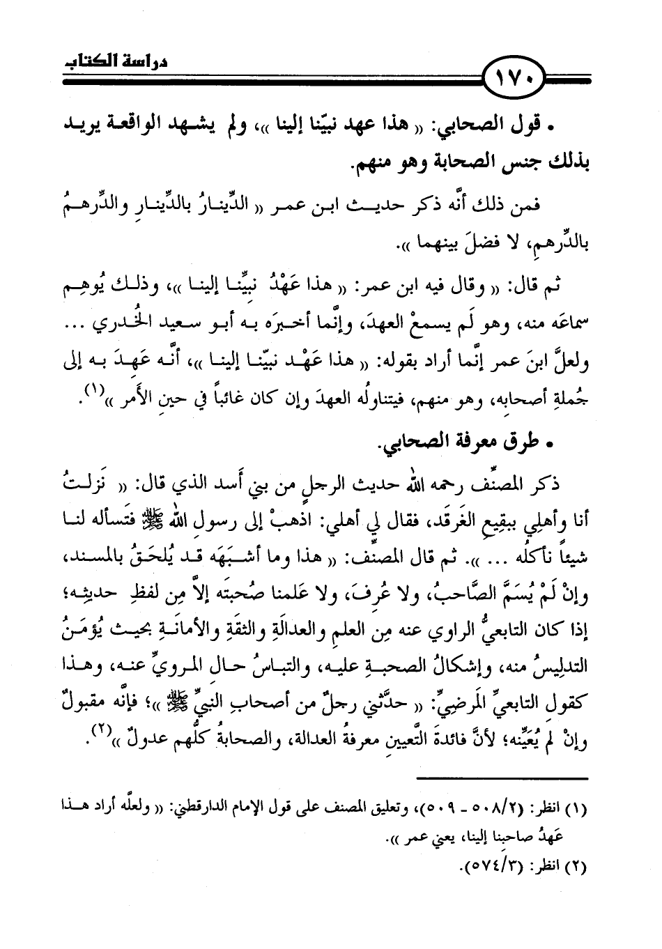 (١) انظر: (٢/ ٥٠٨ - ٥٠٩)، وتعليق المصنف على قول الإمام الدارقطني: "ولعلَّه أراد هذا عَهدُ صاحبنا إلينا، يعني عمر".