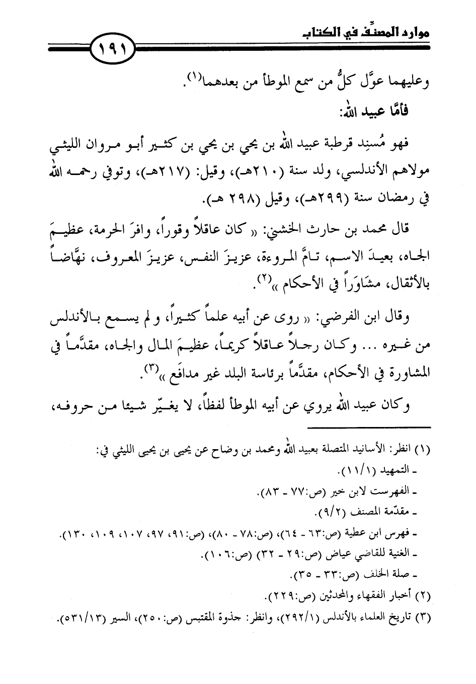 (١) انظر: الأسانيد المتصلة بعبيد الله ومحمد بن وضاح عن يحيى بن يحيى الليثي في:
