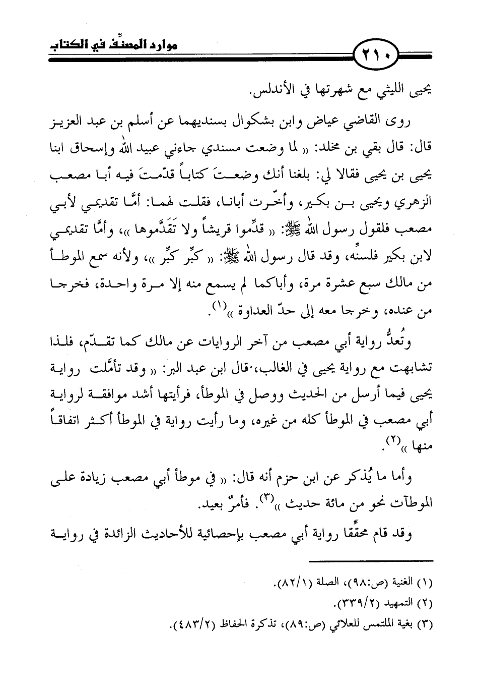 وأما ما يُذكر عن ابن حزم أنه قال: "في موطأ أبي مصعب زيادة على الموطآت نحو من مائة حديث" (٣). فأمرٌ بعيد.