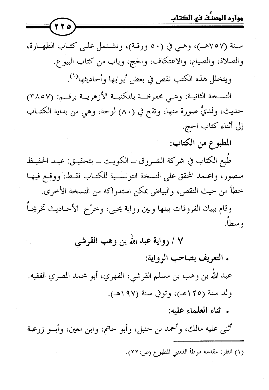 (١) انظر: مقدمة موطأ القعنبي المطبوع (ص: ٢٢).