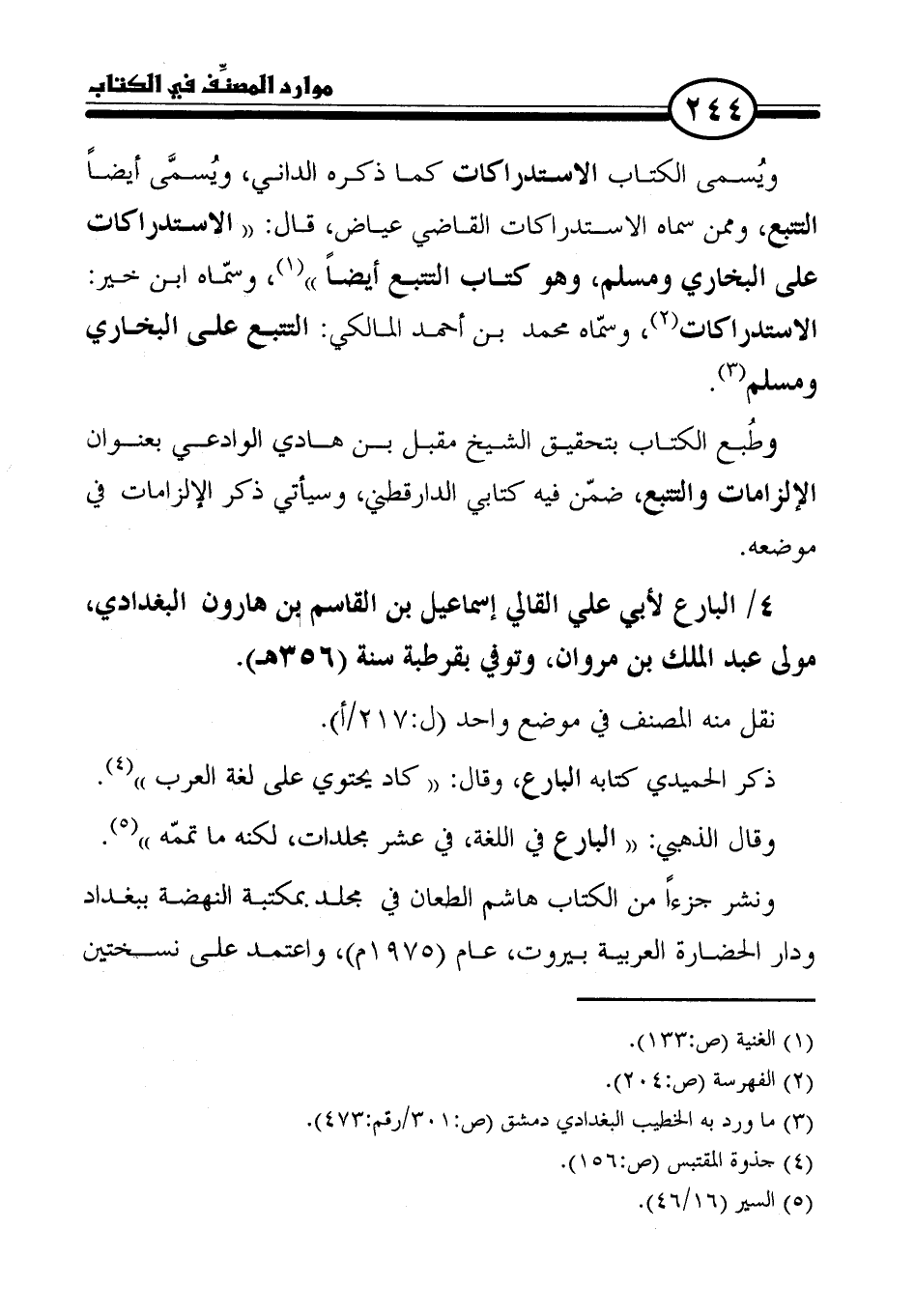 البارع لأبي علي القالي إسماعيل بن القاسم بن هارون البغدادي، مولي عبد الملك بن مروان، وتوفي بقرطبة سنة (٣٥٦ هـ).