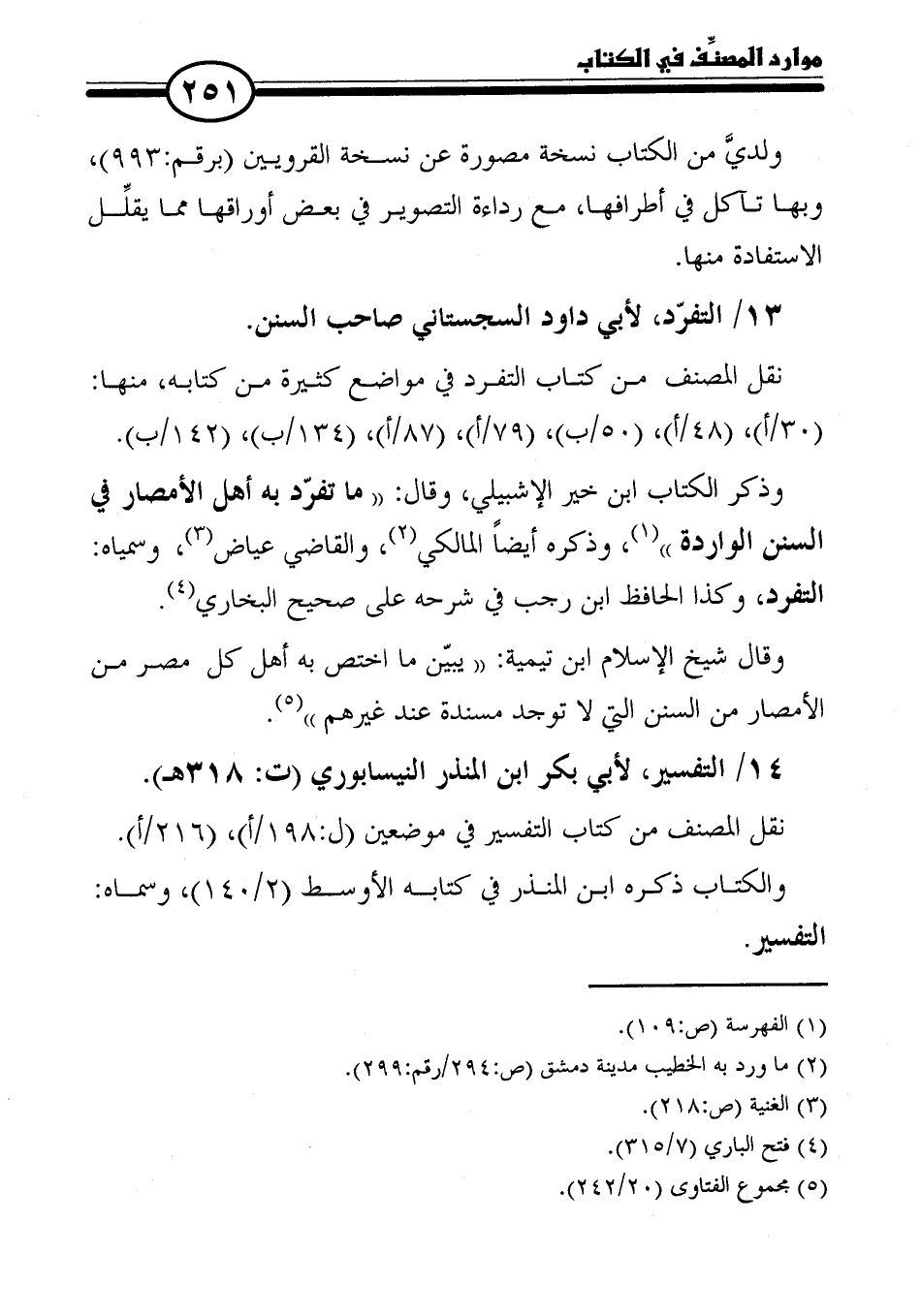 ١٣/ التفرّد، لأبي داود السجستاني صاحب السنن.