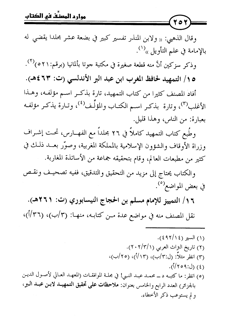 (٥) انظر: ما كتبه د- محمد عبد النبي! في مجلة الموافقات (المعهد العالي لأصول الدين بالجزائر) العدد الرابع والخامس بعنوان: ملاحظات على تحقيق التمهيد لابن عبد البر، ولم يستوعب ذكر الأخطاء.