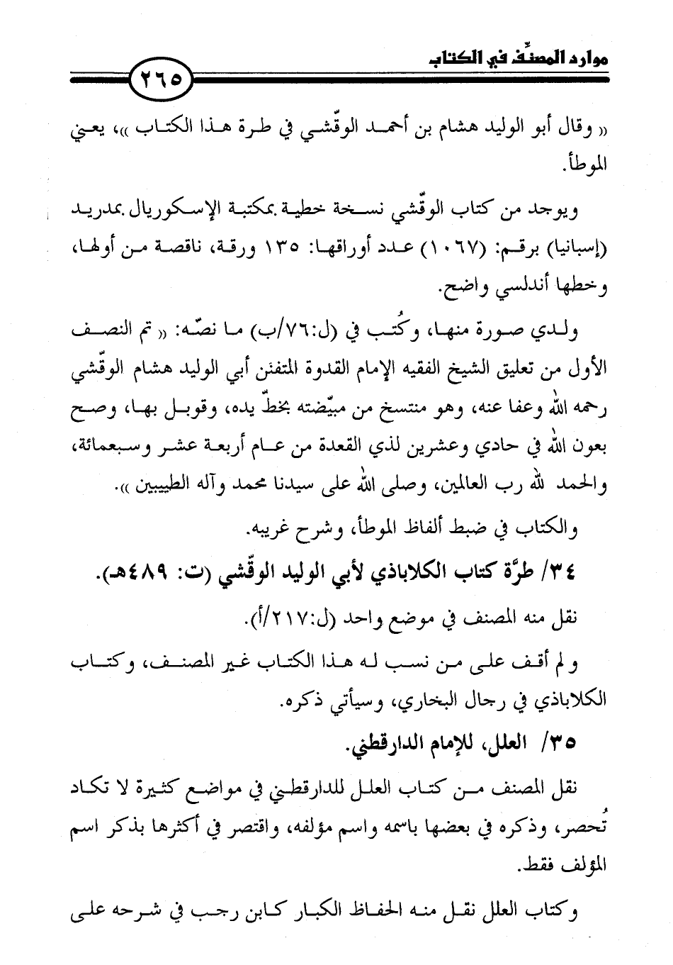 "وقال أبو الوليد هشام بن أحمد الوقّشي في طرة هذا الكتاب"، يعني الموطأ.