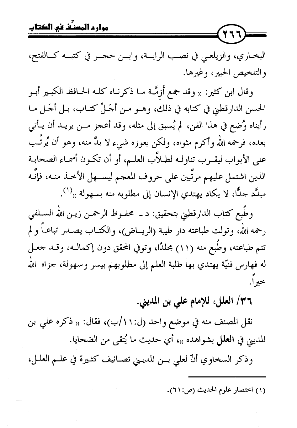٣٦/ العلل، للإمام علي بن المديني.