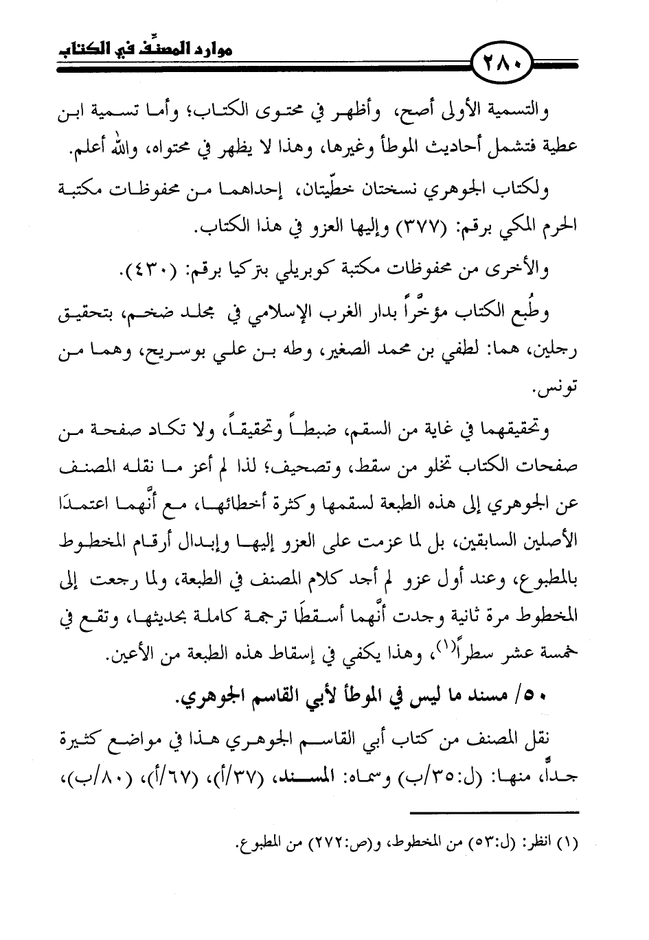 ٥٠/ مسند ما ليس في الموطأ لأبي القاسم الجوهري.
