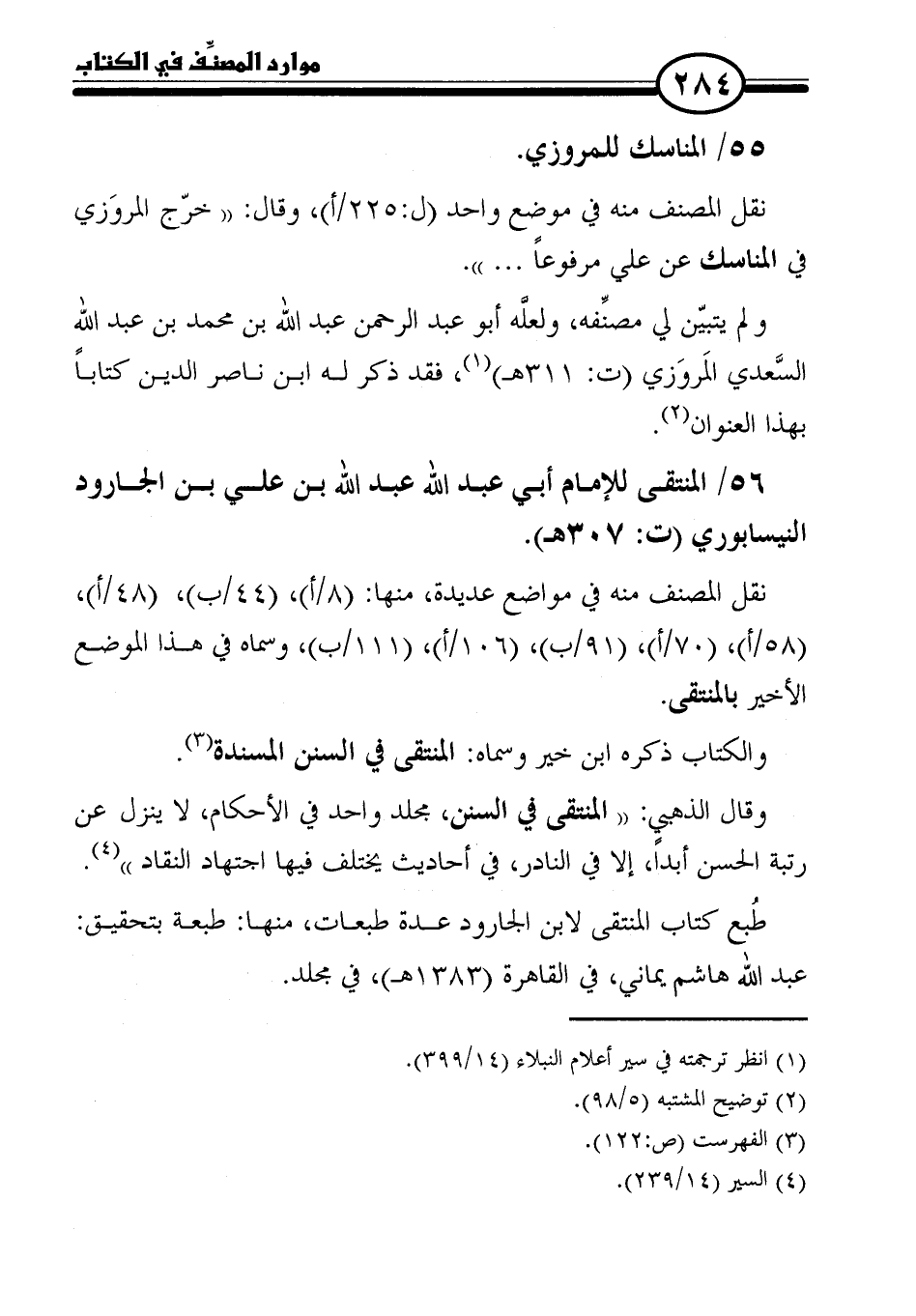 ٥٦/ المنتقى للإمام أبي عبد الله عبد الله بن علي بن الجارود النيسابوري (ت: ٣٠٧ هـ).