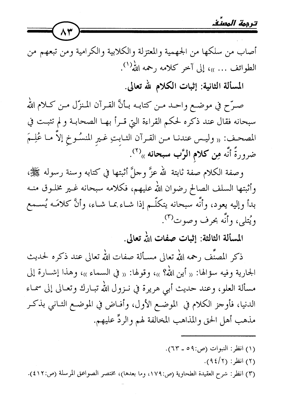 (٣) انظر: شرح العقيدة الطحاوية (ص: ١٧٩، وما بعدها)، مختصر الصواعق المرسلة (ص: ٤١٢).
