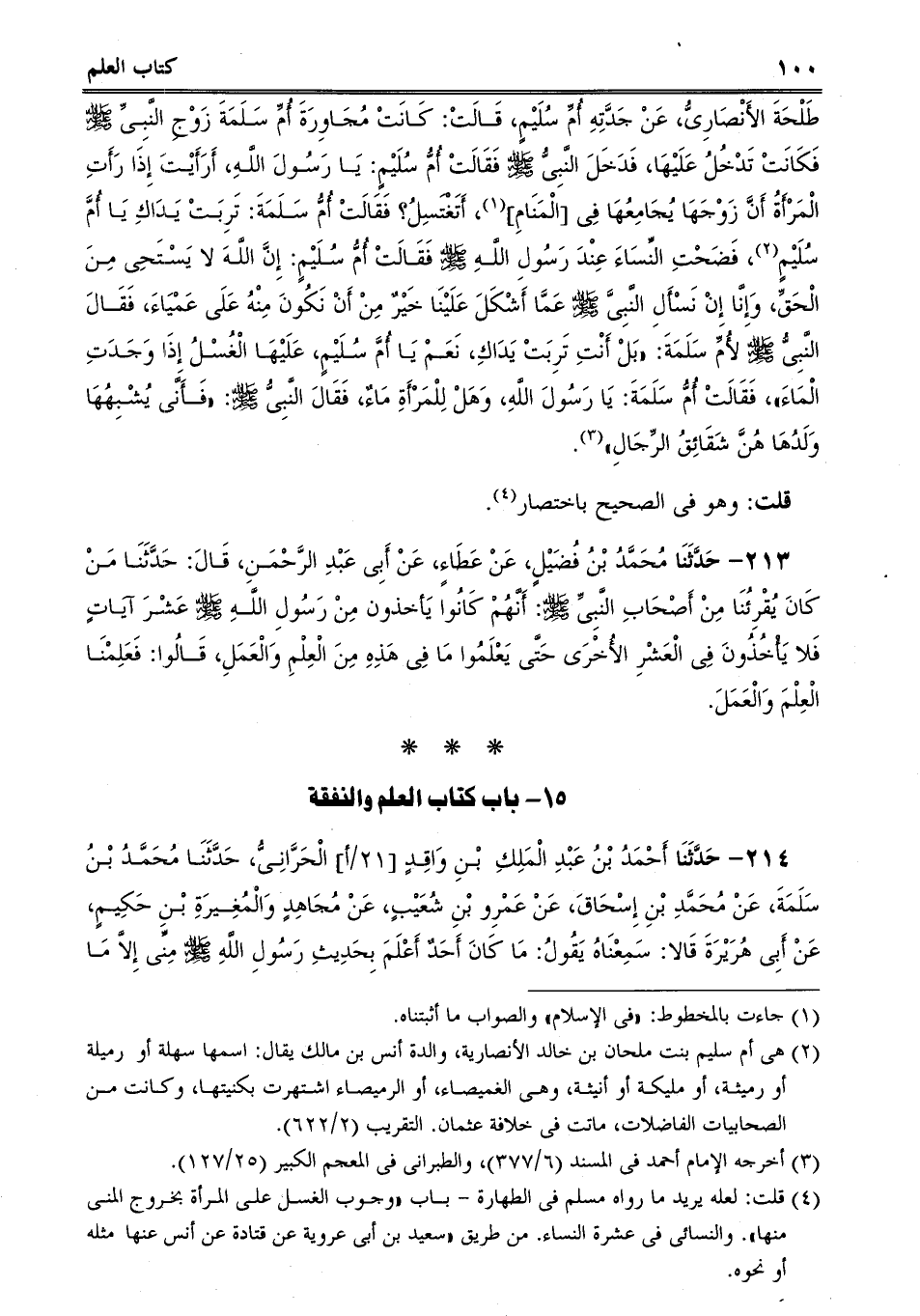 214 - حَدَّثَنَا أَحْمَدُ بْنُ عَبْدِ الْمَلِكِ بْنِ وَاقِدٍ الْحَرَّانِىُّ، حَدَّثَنَا مُحَمَّدُ بْنُ سَلَمَةَ، عَنْ مُحَمَّدِ بْنِ إِسْحَاقَ، عَنْ عَمْرِو بْنِ شُعَيْبٍ، عَنْ مُجَاهِدٍ وَالْمُغِيرَةِ بْنِ حَكِيمٍ، عَنْ أَبِى هُرَيْرَةَ قَالا: سَمِعْنَاهُ يَقُولُ: مَا كَانَ أَحَدٌ أَعْلَمَ بِحَدِيثِ رَسُولِ اللَّهِ صلى الله عليه وسلم مِنِّى إِلاَّ مَا -[101]- كَانَ مِنْ عَبْدِ اللَّهِ بْنِ عَمْرٍو، فَإِنَّهُ يَكْتُبُه بِيَدِهِ وَيَعِيهِ بِقَلْبِهِ، وَكُنْتُ أَعِيهِ بِقَلْبِى وَلاَ أَكْتُبُ بِيَدِى وَاسْتَأْذَنَ رَسُولَ اللَّهِ صلى الله عليه وسلم فِى الْكِتَابِة عَنْهُ فَأَذِنَ لَهُ.