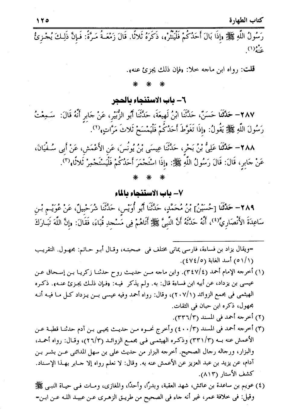 289 - حَدَّثَنَا [حُسَيْنُ] بْنُ مُحَمَّدٍ، حَدَّثَنَا أَبُو أُوَيْسٍ، حَدَّثَنَا شُرَحْبِيلٌ، عَنْ عُوَيْمِ بْنِ سَاعِدَةَ الأَنْصَارِيِّ، أَنَّهُ حَدَّثَهُ أَنَّ النَّبِىَّ صلى الله عليه وسلم أَتَاهُمْ فِى مَسْجِدِ قُبَاءَ، فَقَالَ: "إِنَّ اللَّهَ تَبَارَكَ -[126]- وَتَعَالَى قَدْ أَحْسَنَ عَلَيْكُمُ الثَّنَاءَ فِى الطُّهُورِ، فِى قِصَّةِ مَسْجِدِكُمْ فَمَا هَذَا الطُّهُورُ الَّذِى تَطَّهَّرُونَ بِهِ؟ قَالُوا: وَاللَّهِ يَا رَسُولَ اللَّهِ، مَا نَعْلَمُ شَيْئًا إِلاَّ أَنَّهُ كَانَ لَنَا جِيرَانٌ مِنَ الْيَهُودِ، فَكَانُوا يَغْسِلُونَ أَدْبَارَهُمْ مِنَ الْغَائِطِ فَغَسَلْنَا كَمَا غَسَلُوا.
