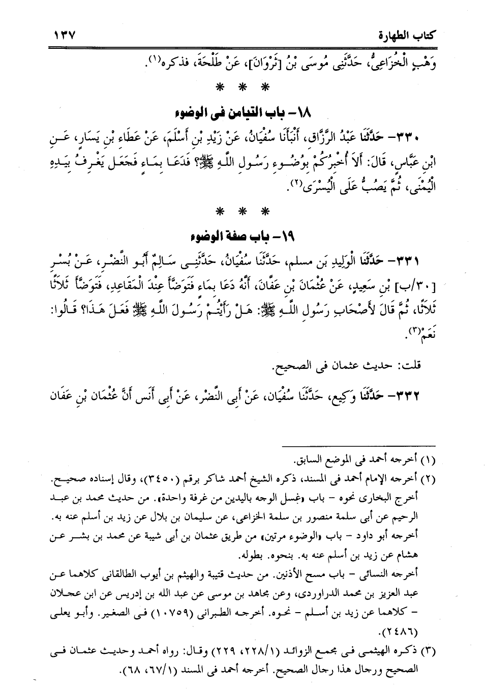332 - حَدَّثَنَا وَكِيع، حَدَّثَنَا سُفْيَان، عَنْ أَبِى النَّضْر، عَنْ أَبِى أَنَس أَنَّ عُثْمَان بْنِ عَفَان -[138]- تَوَضَأ فَذَكَر نَحْوه عَنْ عُثْمَان وَالْصَحَابة.