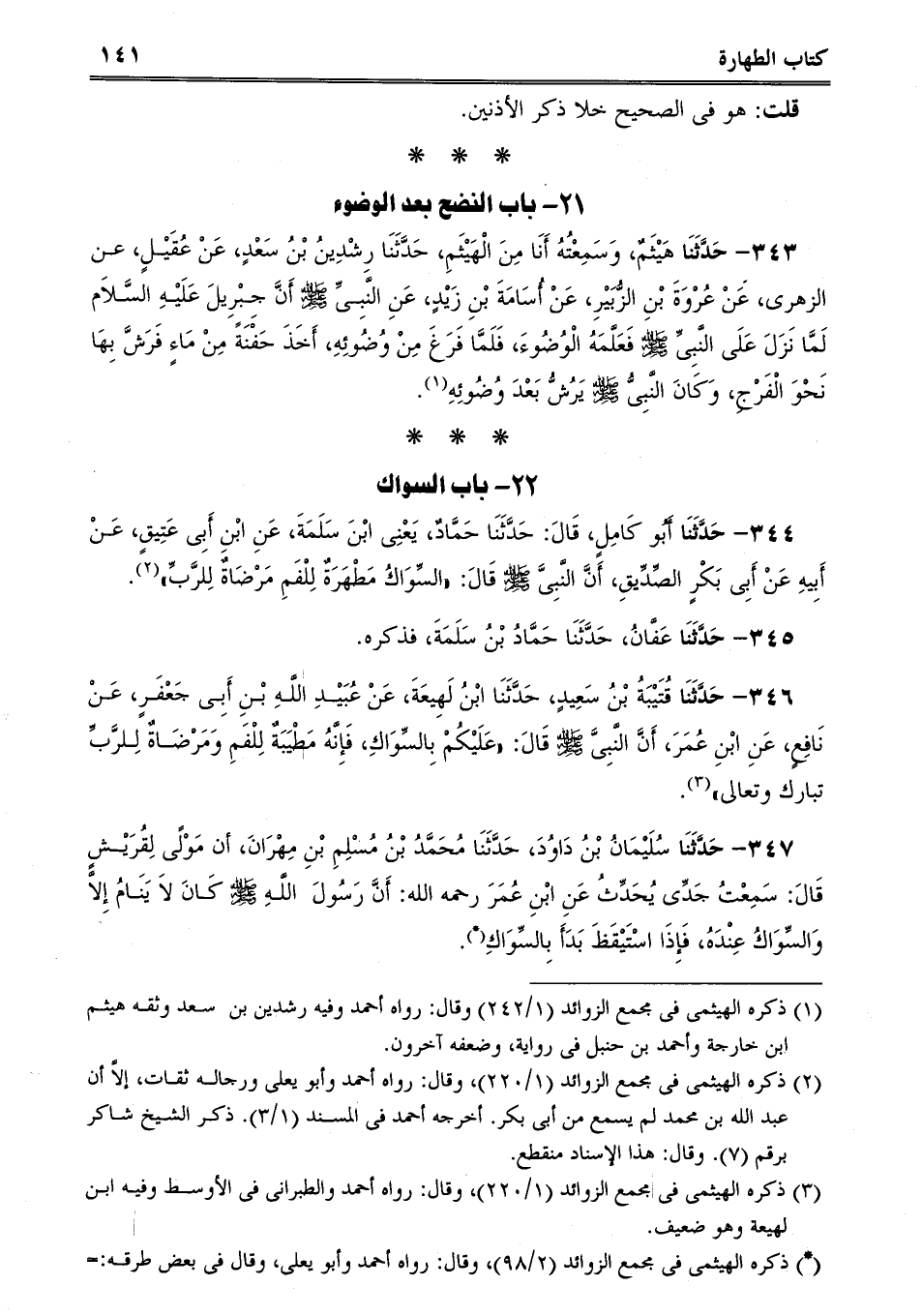 343 - حَدَّثَنَا هَيْثَمٌ، وَسَمِعْتُهُ أَنَا مِنَ الْهَيْثَمِ، حَدَّثَنَا رِشْدِينُ بْنُ سَعْدٍ، عَنْ عُقَيْلٍ، عن الزهرى، عَنْ عُرْوَةَ بْنِ الزُّبَيْرِ، عَنْ أُسَامَةَ بْنِ زَيْدٍ، عَنِ النَّبِىِّ صلى الله عليه وسلم أَنَّ جِبْرِيلَ عَلَيْهِ السَّلاَم لَمَّا نَزَلَ عَلَى النَّبِىِّ صلى الله عليه وسلم فَعَلَّمَهُ الْوُضُوءَ، فَلَمَّا فَرَغَ مِنْ وُضُوئِهِ، أَخَذَ حَفْنَةً مِنْ مَاءٍ فَرَشَّ بِهَا نَحْوَ الْفَرْجِ، وَكَانَ النَّبِىُّ صلى الله عليه وسلم يَرُشُّ بَعْدَ وُضُوئِهِ.
