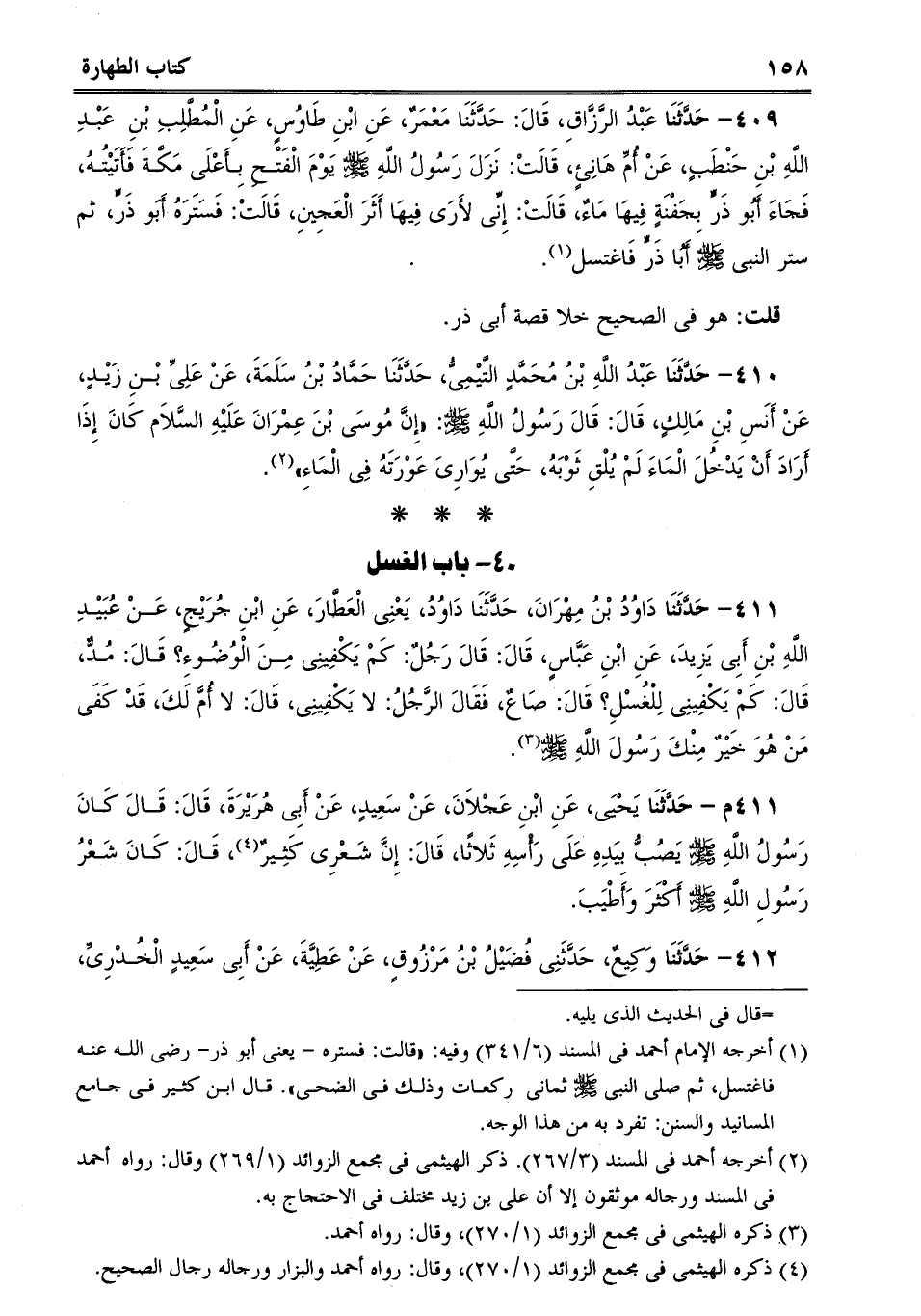 411 - حَدَّثَنَا دَاوُدُ بْنُ مِهْرَانَ، حَدَّثَنَا دَاوُدُ، يَعْنِى الْعَطَّارَ، عَنِ ابْنِ جُرَيْجٍ، عَنْ عُبَيْدِ اللَّهِ بْنِ أَبِى يَزِيدَ، عَنِ ابْنِ عَبَّاسٍ، قَالَ: قَالَ رَجُلٌ: كَمْ يَكْفِينِى مِنَ الْوُضُوءِ؟ قَالَ: مُدٌّ، قَالَ: كَمْ يَكْفِينِى لِلْغُسْلِ؟ قَالَ: صَاعٌ، فَقَالَ الرَّجُلُ: لا يَكْفِينِى، قَالَ: لا أُمَّ لَكَ، قَدْ كَفَى مَنْ هُوَ خَيْرٌ مِنْكَ رَسُولَ اللَّهِ صلى الله عليه وسلم.