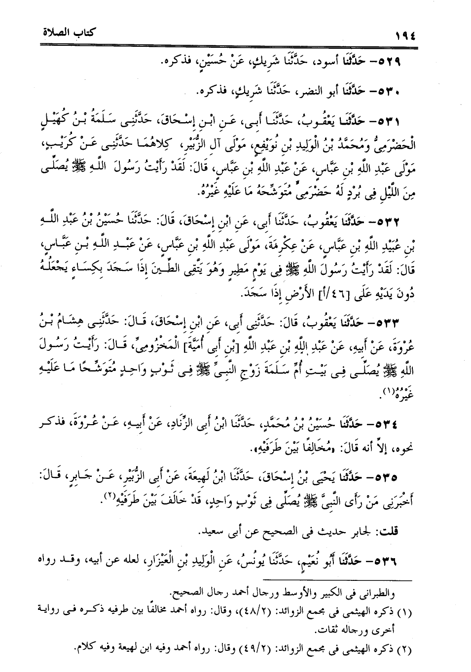 531 - حَدَّثَنَا يَعْقُوبُ، حَدَّثَنَا أَبِى، عَنِ ابْنِ إِسْحَاقَ، حَدَّثَنِى سَلَمَةُ بْنُ كُهَيْلٍ الْحَضْرَمِىُّ وَمُحَمَّدُ بْنُ الْوَلِيدِ بْنِ نُوَيْفِعٍ، مَوْلَى آلِ الزُّبَيْرِ، كِلاهُمَا حَدَّثَنِى عَنْ كُرَيْبٍ، مَوْلَى عَبْدِ اللَّهِ بْنِ عَبَّاسٍ، عَنْ عَبْدِ اللَّهِ بْنِ عَبَّاسٍ، قَالَ: لَقَدْ رَأَيْتُ رَسُولَ اللَّهِ صلى الله عليه وسلم يُصَلِّى مِنَ اللَّيْلِ فِى بُرْدٍ لَهُ حَضْرَمِىٍّ مُتَوَشِّحَهُ مَا عَلَيْهِ غَيْرُهُ.