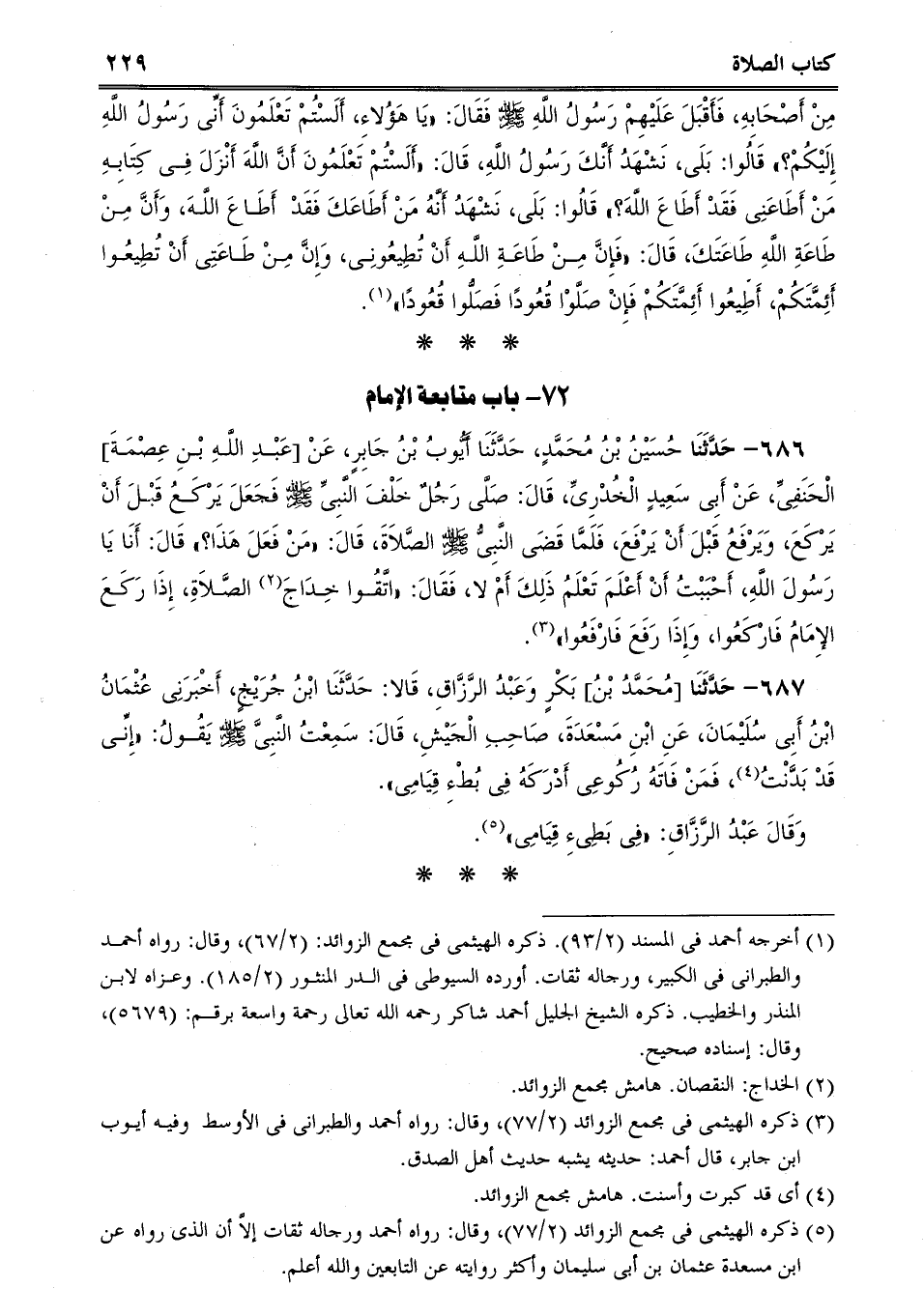686 - حَدَّثَنَا حُسَيْنُ بْنُ مُحَمَّدٍ، حَدَّثَنَا أَيُّوبُ بْنُ جَابِرٍ، عَنْ [عَبْدِ اللَّهِ بْنِ عِصْمَةَ] الْحَنَفِىِّ، عَنْ أَبِى سَعِيدٍ الْخُدْرِىِّ، قَالَ: صَلَّى رَجُلٌ خَلْفَ النَّبِىِّ صلى الله عليه وسلم فَجَعَلَ يَرْكَعُ قَبْلَ أَنْ يَرْكَعَ، وَيَرْفَعُ قَبْلَ أَنْ يَرْفَعَ، فَلَمَّا قَضَى النَّبِىُّ صلى الله عليه وسلم الصَّلاَةَ، قَالَ: "مَنْ فَعَلَ هَذَا؟ قَالَ: أَنَا يَا رَسُولَ اللَّهِ، أَحْبَبْتُ أَنْ أَعْلَمَ تَعْلَمُ ذَلِكَ أَمْ لا، فَقَالَ: "اتَّقُوا خِدَاجَ الصَّلاَةِ، إِذَا رَكَعَ الإِمَامُ فَارْكَعُوا، وَإِذَا رَفَعَ فَارْفَعُوا.