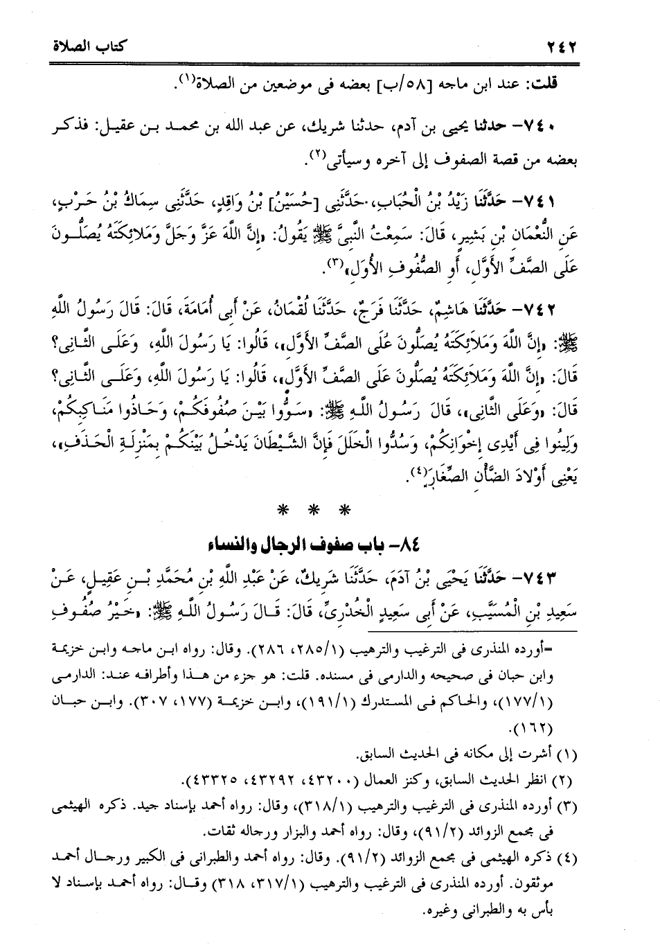 740 - حدثنا يحيى بن آدم، حدثنا شريك، عن عبد الله بن محمد بن عقيل: فذكر بعضه من قصة الصفوف إلى آخره وسيأتى.
