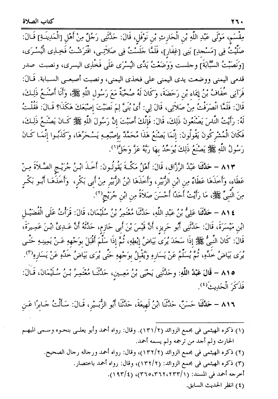 813 - حَدَّثَنَا عَبْدُ الرَّزَّاقِ، قَالَ: أَهْلُ مَكَّةَ يَقُولُونَ: أَخَذَ ابْنُ جُرَيْجٍ الصَّلاَةَ مِنْ عَطَاءٍ، وَأَخَذَهَا عَطَاءٌ مِنِ ابْنِ الزُّبَيْرِ، وَأَخَذَهَا ابْنُ الزُّبَيْرِ مِنْ أَبِى بَكْرٍ، وَأَخَذَهَا أَبُو بَكْرٍ مِنَ النَّبِىِّ صلى الله عليه وسلم، مَا رَأَيْتُ أَحَدًا أَحْسَنَ صَلاَةً مِنِ ابْنِ جُرَيْجٍ.
