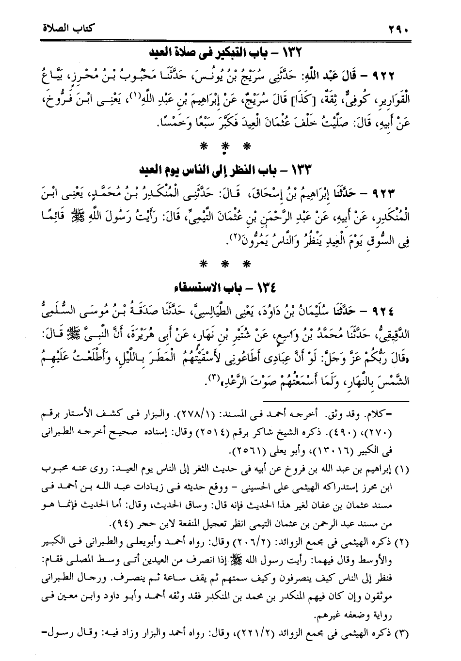 922 - قَالَ عَبْد اللَّهِ: حَدَّثَنِى سُرَيْجُ بْنُ يُونُسَ، حَدَّثَنَا مَحْبُوبُ بْنُ مُحْرِزٍ، بَيَّاعُ الْقَوَارِيرِ، كُوفِىٌّ، ثِقَةٌ، [كَذَا] قَالَ سُرَيْجٌ، عَنْ إِبْرَاهِيمَ بْنِ عَبْدِ اللَّهِ، يَعْنِى ابْنَ فَرُّوخَ، عَنْ أَبِيهِ، قَالَ: صَلَّيْتُ خَلْفَ عُثْمَانَ الْعِيدَ فَكَبَّرَ سَبْعًا وَخَمْسًا.