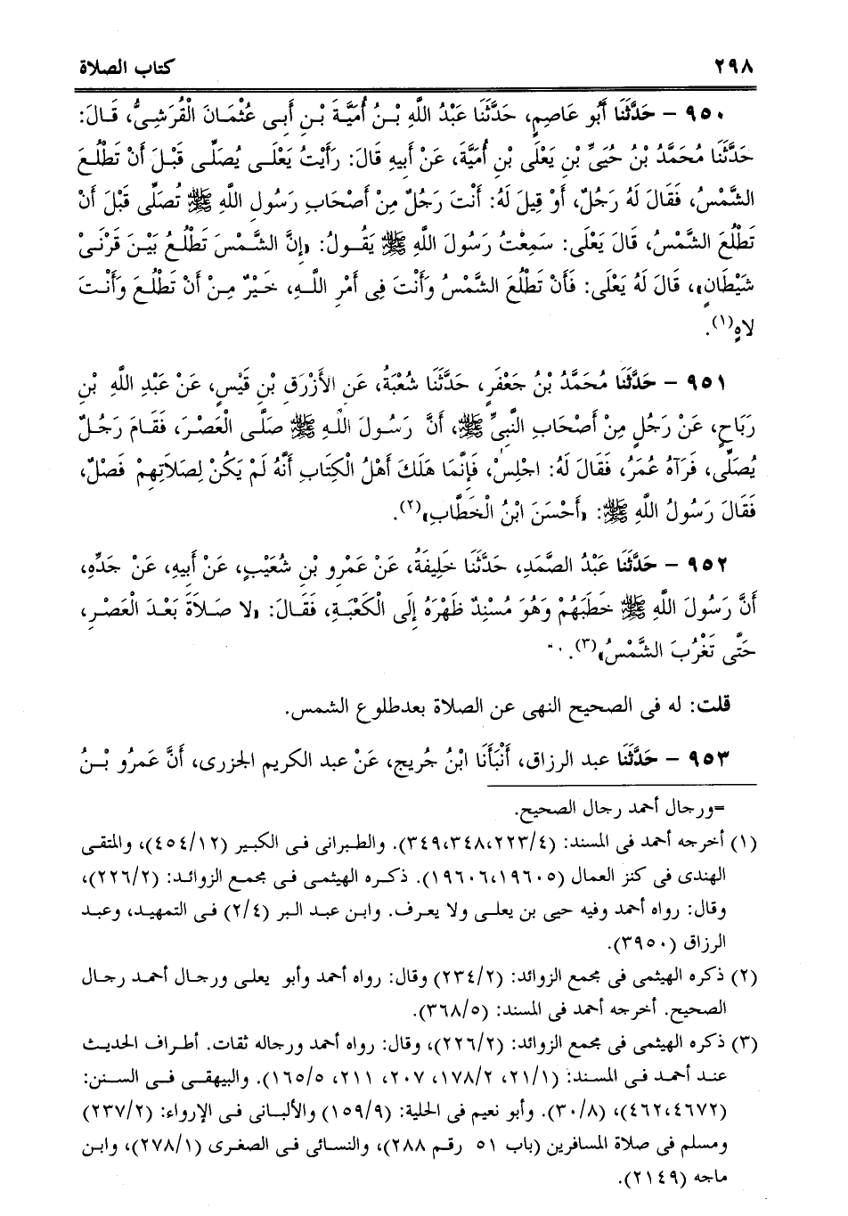 951 - حَدَّثَنَا مُحَمَّدُ بْنُ جَعْفَرٍ، حَدَّثَنَا شُعْبَةُ، عَنِ الأَزْرَقِ بْنِ قَيْسٍ، عَنْ عَبْدِ اللَّهِ بْنِ رَبَاحٍ، عَنْ رَجُلٍ مِنْ أَصْحَابِ النَّبِىِّ صلى الله عليه وسلم، أَنَّ رَسُولَ اللَّهِ صلى الله عليه وسلم صَلَّى الْعَصْرَ، فَقَامَ رَجُلٌ يُصَلِّى، فَرَآهُ عُمَرُ، فَقَالَ لَهُ: اجْلِسْ، فَإِنَّمَا هَلَكَ أَهْلُ الْكِتَابِ أَنَّهُ لَمْ يَكُنْ لِصَلاَتِهِمْ فَصْلٌ، فَقَالَ رَسُولُ اللَّهِ صلى الله عليه وسلم: "أَحْسَنَ ابْنُ الْخَطَّابِ.