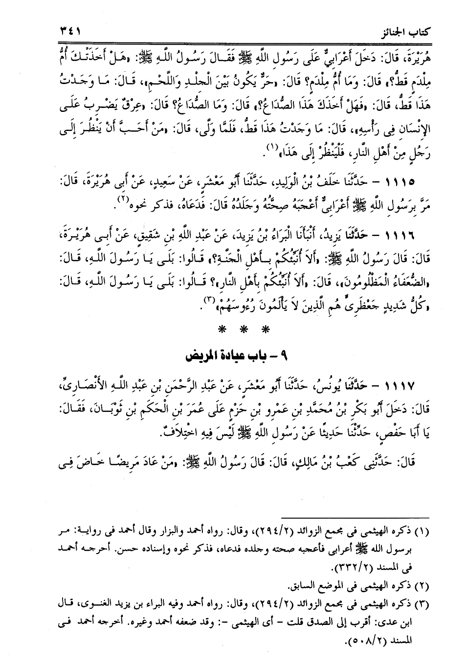 1115 - حَدَّثَنَا خَلَفُ بْنُ الْوَلِيدِ، حَدَّثَنَا أَبُو مَعْشَرٍ، عَنْ سَعِيدٍ، عَنْ أَبِى هُرَيْرَةَ، قَالَ: مَرَّ بِرَسُولِ اللَّهِ صلى الله عليه وسلم أَعْرَابِىٌّ أَعْجَبَهُ صِحَّتُهُ وَجَلَدُهُ قَالَ: فَدَعَاهُ، فذكر نحوه.