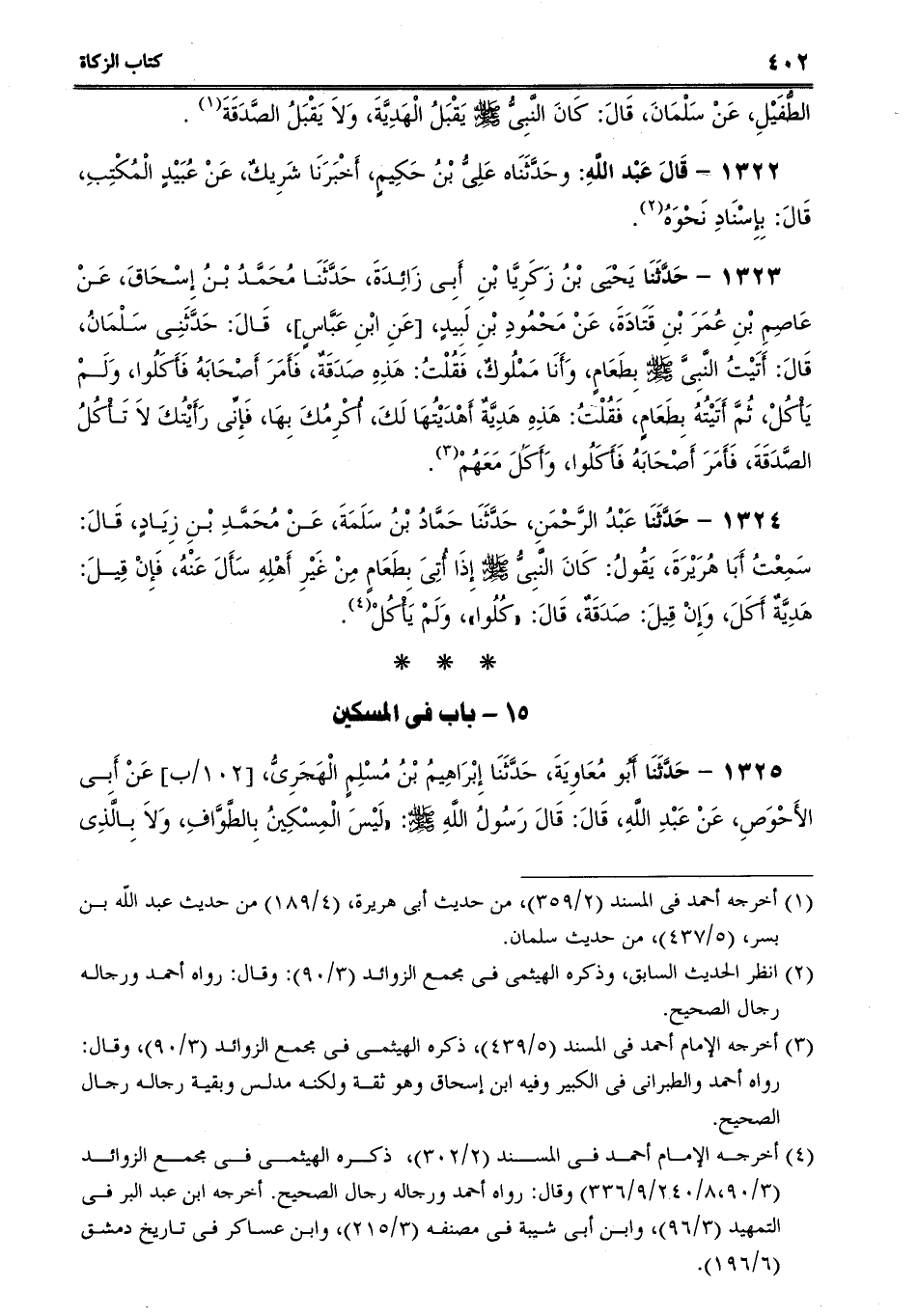 1325 - حَدَّثَنَا أَبُو مُعَاوِيَةَ، حَدَّثَنَا إِبْرَاهِيمُ بْنُ مُسْلِمٍ الْهَجَرِىُّ، عَنْ أَبِى الأَحْوَصِ، عَنْ عَبْدِ اللَّهِ، قَالَ: قَالَ رَسُولُ اللَّهِ صلى الله عليه وسلم: "لَيْسَ الْمِسْكِينُ بِالطَّوَّافِ، وَلاَ بِالَّذِى -[403]- تَرُدُّهُ التَّمْرَةُ، وَلاَ التَّمْرَتَانِ، وَلاَ اللُّقْمَةُ، وَلاَ اللُّقْمَتَانِ، وَلَكِنِ الْمِسْكِينُ الْمُتَعَفِّفُ الَّذِى لاَ يَسْأَلُ النَّاسَ شَيْئًا، وَلاَ يُفْطَنُ لَهُ فَيُتَصَدَّقَ عَلَيْهِ.