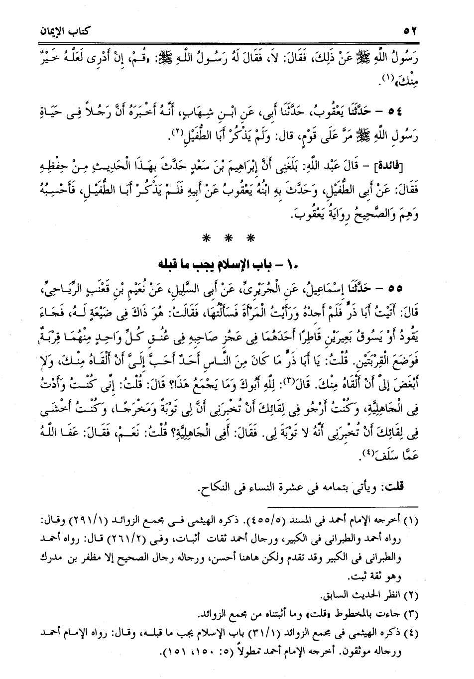 54 - حَدَّثَنَا يَعْقُوبُ، حَدَّثَنَا أَبِى، عَنِ ابْنِ شِهَابٍ، أَنَّهُ أَخْبَرَهُ أَنَّ رَجُلاً فِى حَيَاةِ رَسُولِ اللَّهِ صلى الله عليه وسلم مَرَّ عَلَى قَوْمٍ، قال: وَلَمْ يَذْكُرْ أَبَا الطُّفَيْلِ.