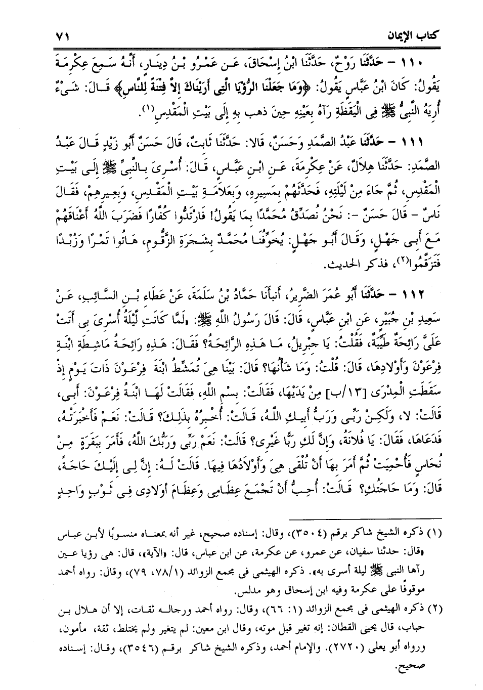 110 - حَدَّثَنَا رَوْحٌ، حَدَّثَنَا ابْنُ إِسْحَاقَ، عَن عَمْرُو بْنُ دِينَارٍ، أَنَّهُ سَمِعَ عِكْرِمَةَ يَقُولُ: كَانَ ابْنُ عَبَّاسٍ يَقُولُ: {وَمَا جَعَلْنَا الرُّؤْيَا الَّتِى أَرَيْنَاكَ إِلاَّ فِتْنَةً لِلنَّاسِ} قَالَ: شَىْءٌ أُرِيَهُ النَّبِىُّ صلى الله عليه وسلم فِى الْيَقَظَةِ رَآهُ بِعَيْنِهِ حِينَ ذهب بِهِ إِلَى بَيْتِ الْمَقْدِسِ.