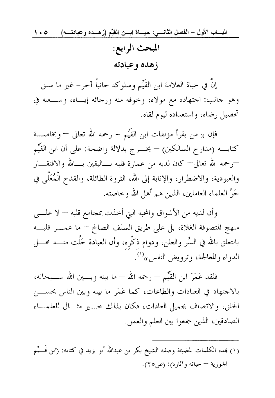 1 بهذه الكلمات المضيئة وصفه الشيخ بكر بن عبد الله أبو بزيد في كتابه: (ابن قَيِّم الجوزية - حياته وآثاره) : (ص25) .