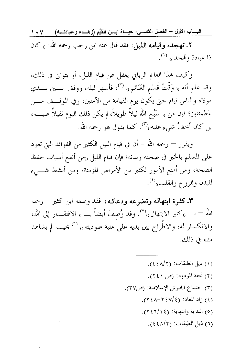 2ـ تهجده وقيامه الليل: فقد قال عنه ابن رجب رحمه الله: "كان ذا عبادة وتهجد"1.