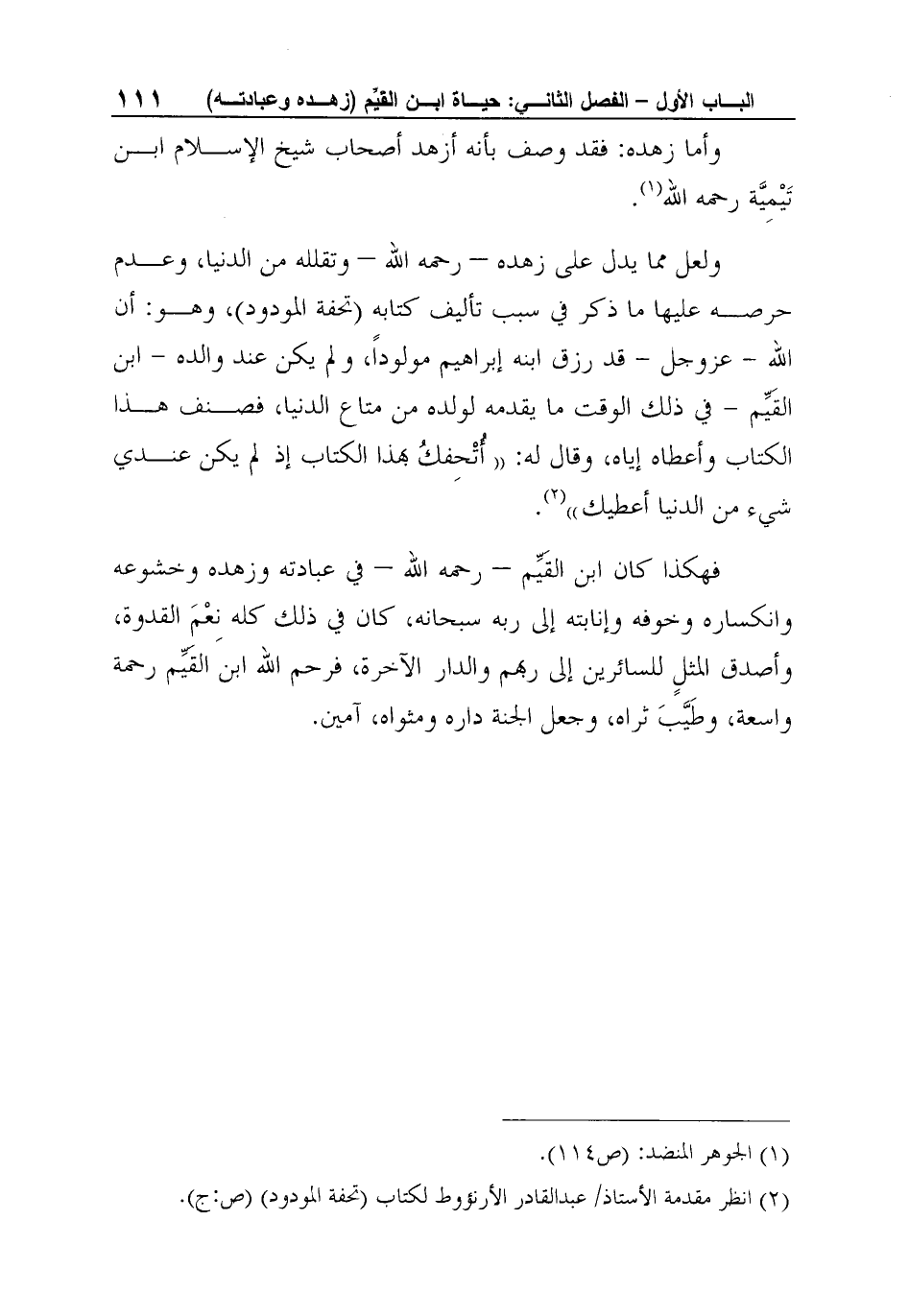 2 انظر مقدمة الأستاذ/ عبد القادر الأرنؤوط لكتاب (تحفة المودود) (ص: ج) .