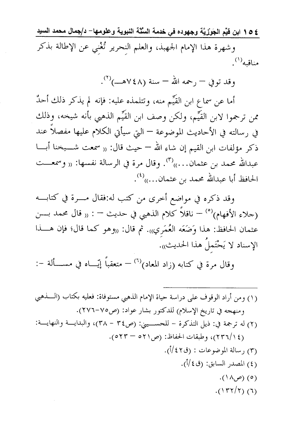 وقال مرة في كتابه (زاد المعاد) 6 - متعقباً إيّاه في مسألة -: