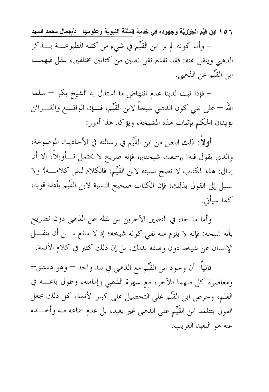ثانياً: أن وجود ابن القَيِّم مع الذهبي في بلد واحد - وهو دمشق– ومعاصرة كل منهما للآخر، مع شهرة الذهبي وإمامته، وطول باعه في العلم، وحرص ابن القَيِّم على التحصيل على كبار الأئمة، كل ذلك يجعل القول بتتلمذ ابن القَيِّم على الذهبي غير بعيد، بل عدم سماعه منه وأخذه عنه هو البعيد الغريب.