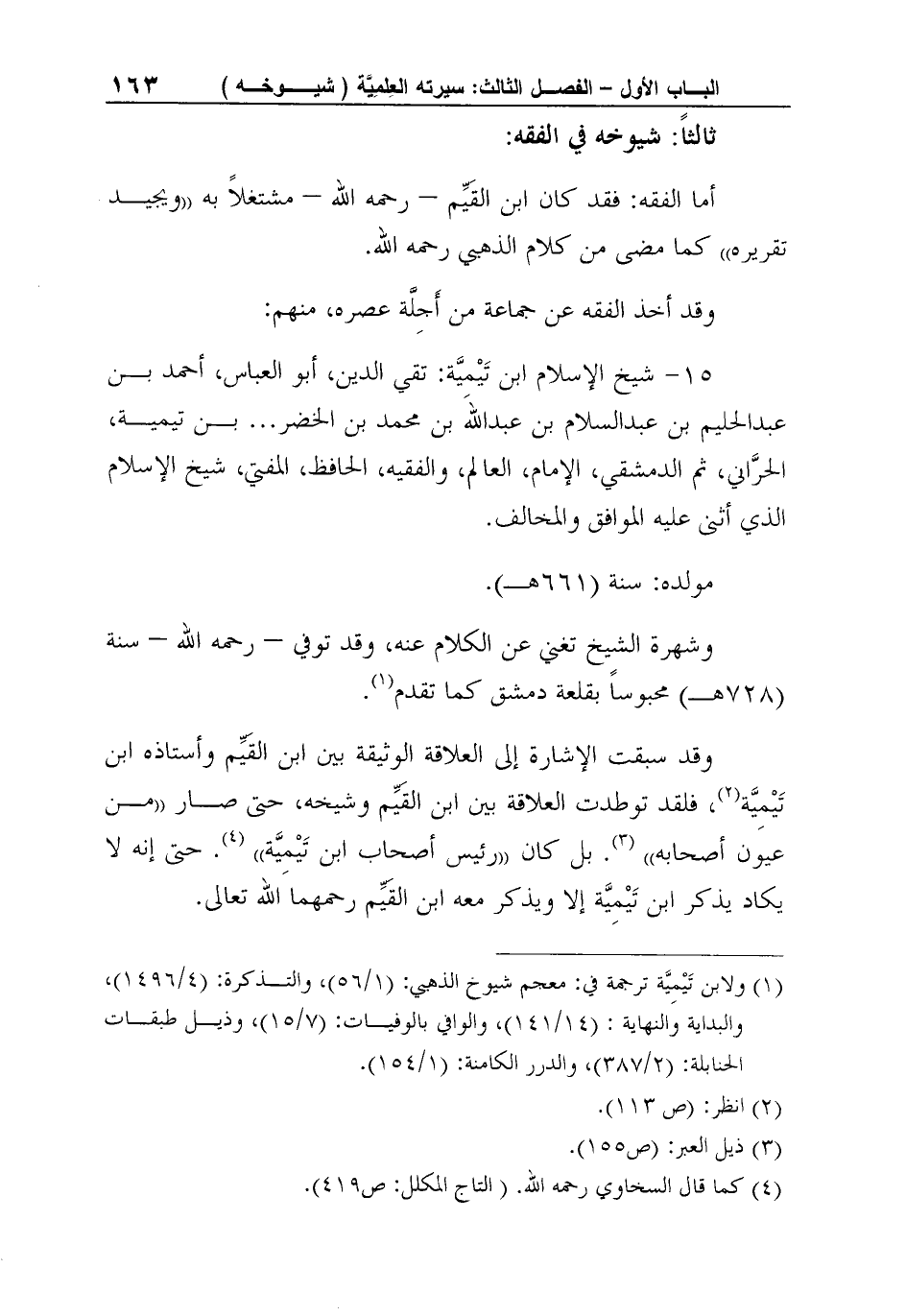 1 ولابن تَيْمِيَّة ترجمة في: معجم شيوخ الذهبي: (1/56) ، والتذكرة: (4/1496) ، والبداية والنهاية: (14/141) ، والوافي بالوفيات: (7/15) ، وذيل طبقات الحنابلة: (2/387) ، والدرر الكامنة: (1/154) .
