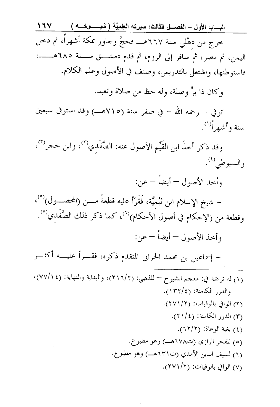 - شيخ الإسلام ابن تَيْمِيَّة، فَقَرَأ عليه قطعةً من (المحصول) 5، وقطعة من (الإحكام في أصول الأحكام) 6، كما ذكر ذلك الصَّفَدِي7.