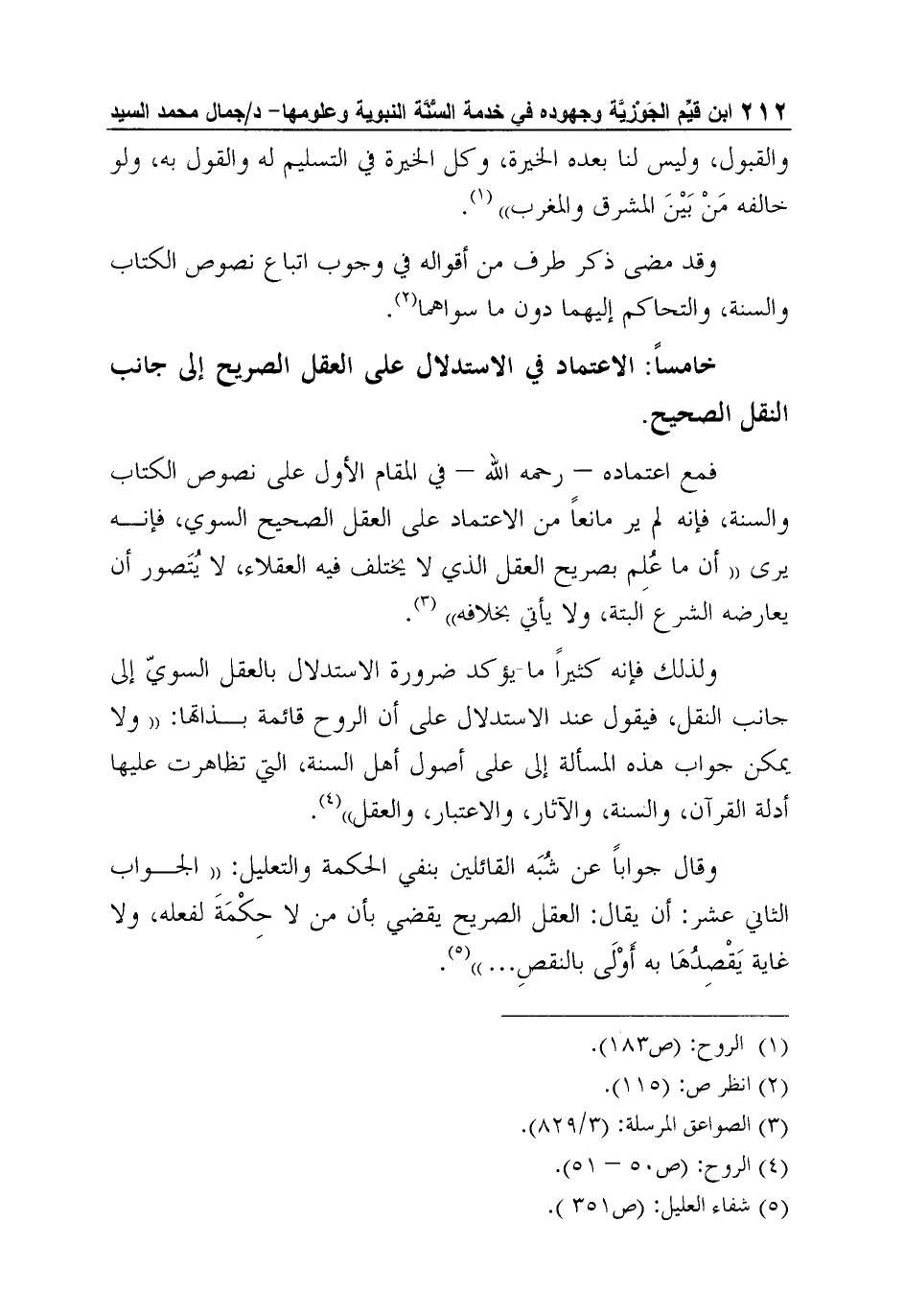 خامساً: الاعتماد في الاستدلال على العقل الصريح إلى جانب النقل الصحيح.