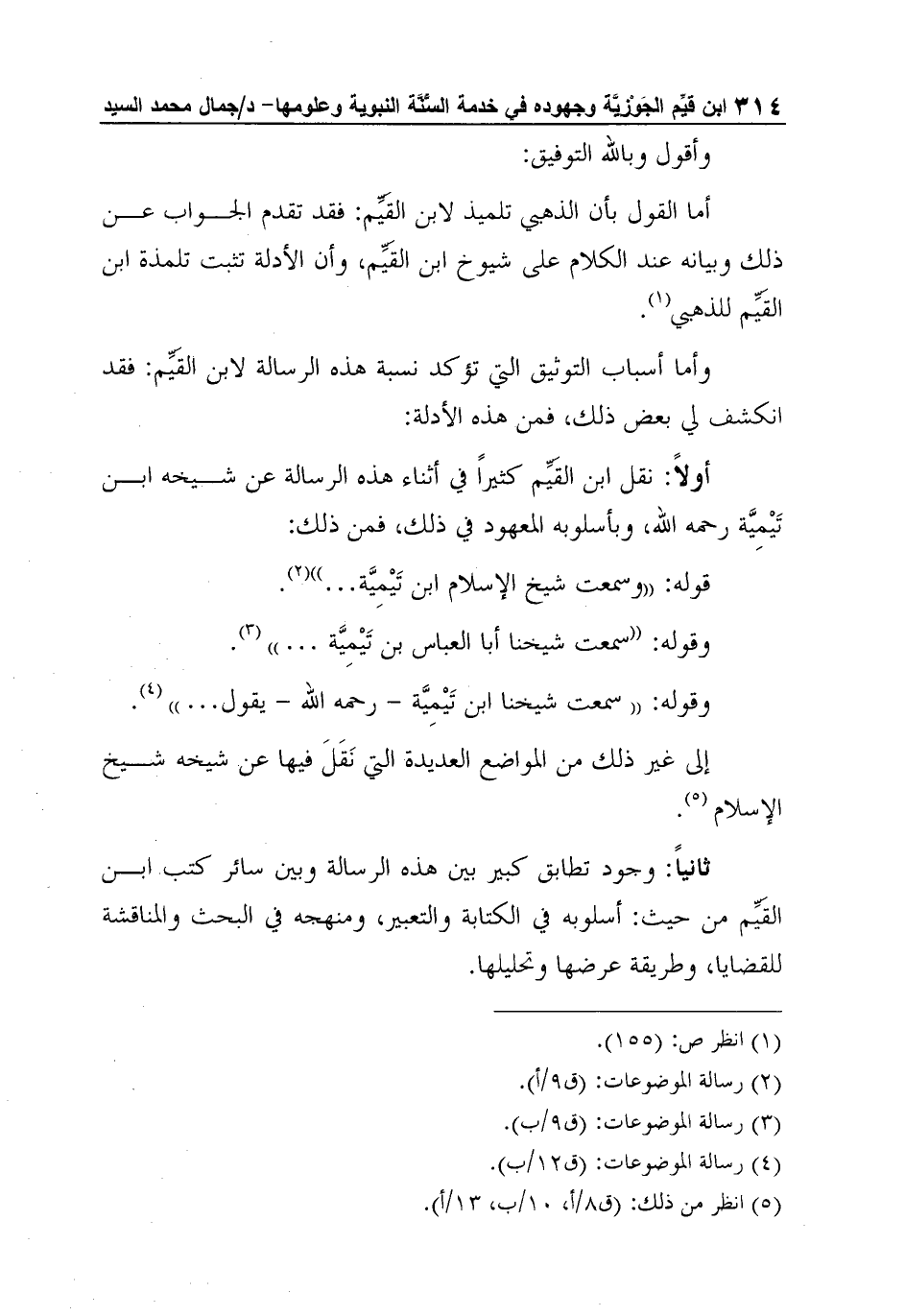 وأما أسباب التوثيق التي تؤكد نسبة هذه الرسالة لابن القَيِّم: فقد انكشف لي بعض ذلك، فمن هذه الأدلة: